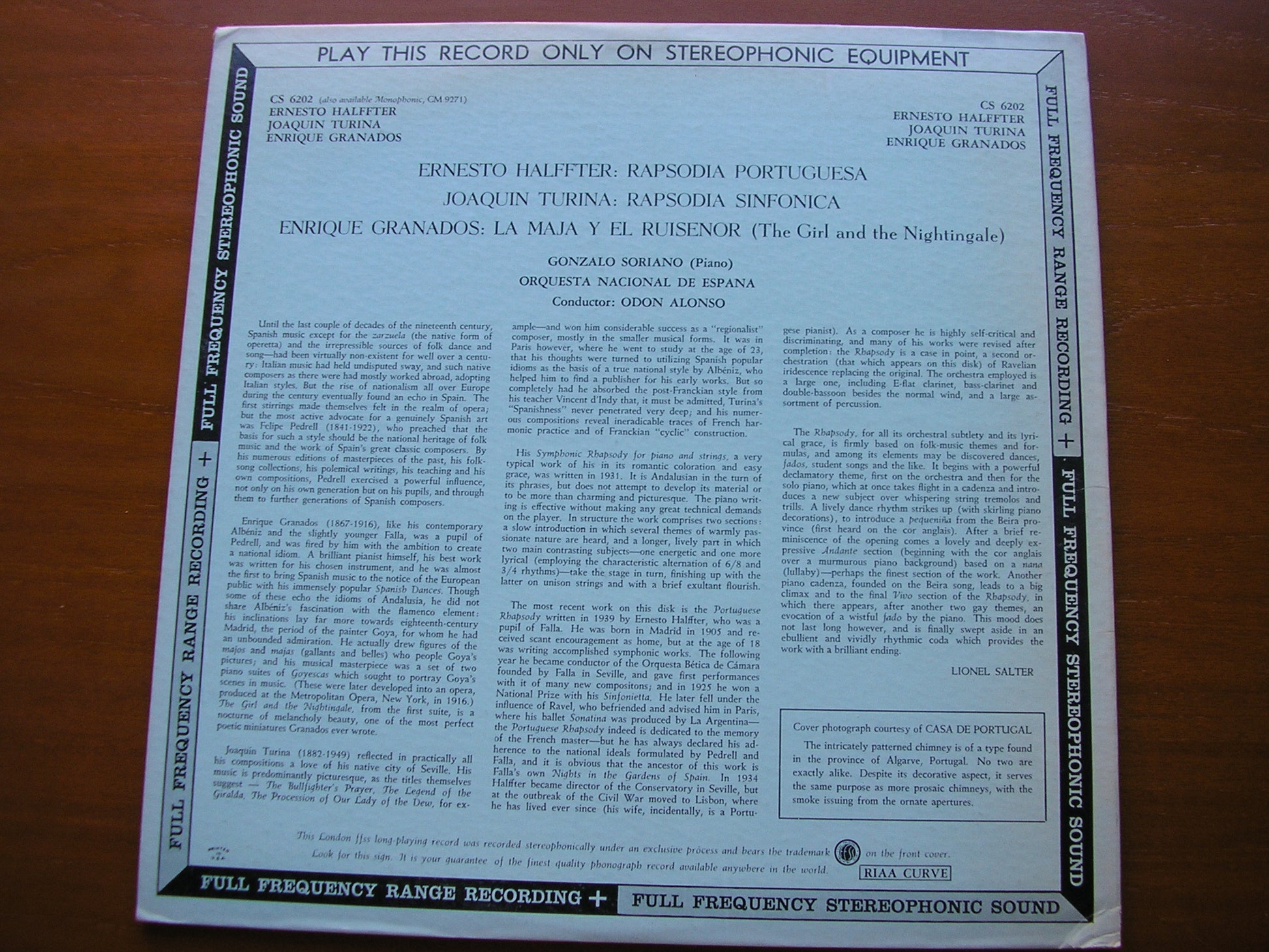 TURINA: RAPSODIA SINFONICA / HALFFTER: RAPSODIA PORTUGUESA SORIANO / SPANISH NATIONAL ORCHESTRA / ALONSO CS 6202