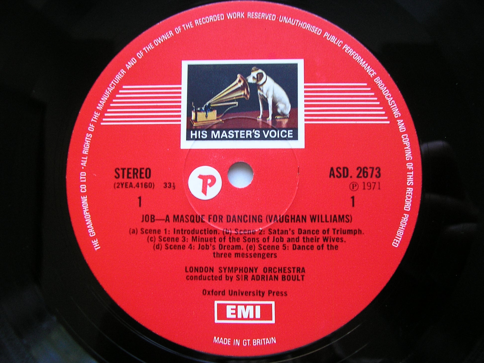 VAUGHAN WILLIAMS: JOB - A Masque for Dancing (complete ballet 1930) BOULT / LONDON SYMPHONY ASD 2673