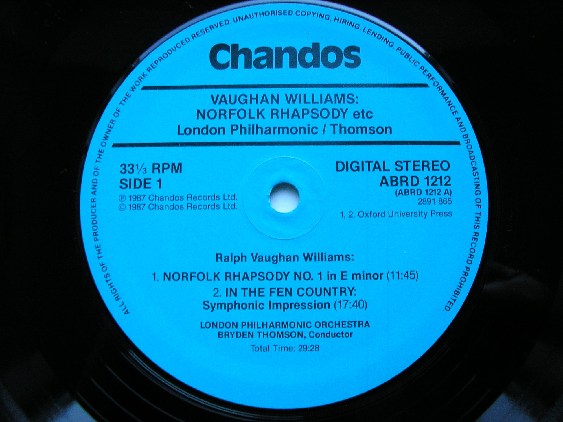ABRD 1212  VAUGHAN WILLIAMS: TALLIS FANTASIA / NORFOLK RHAPSODY No. 1 / IN THE FEN COUNTRY / 5 VARIANTS OF 'DIVES & LAZARUS'      BRYDEN THOMPSON / LONDON PHILHARMONIC ORCHESTRA