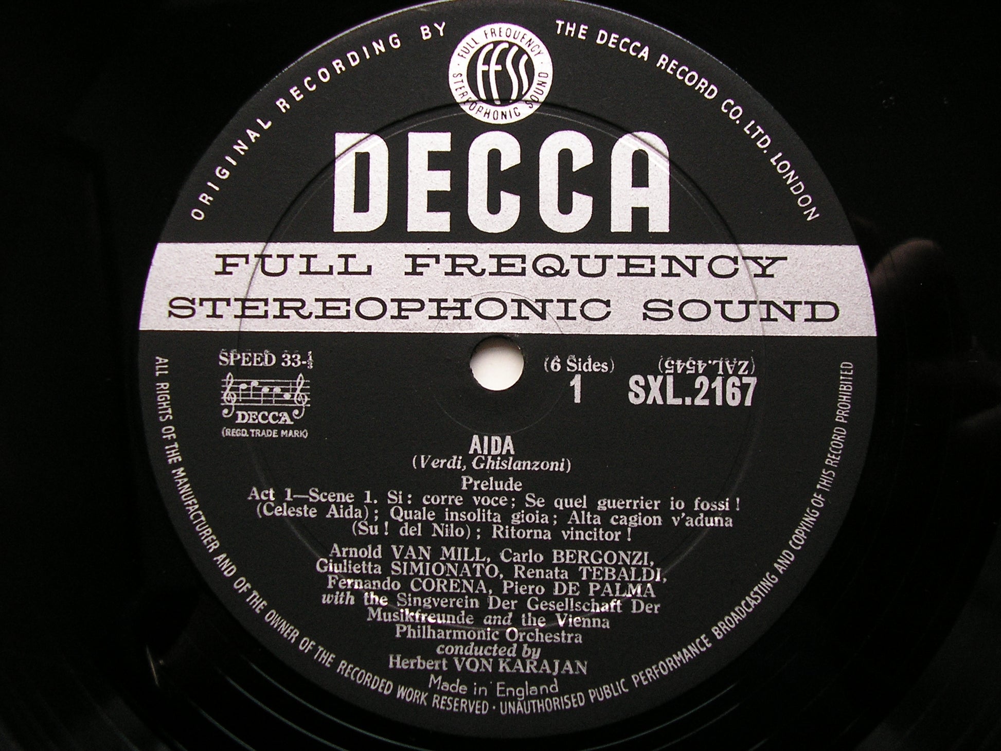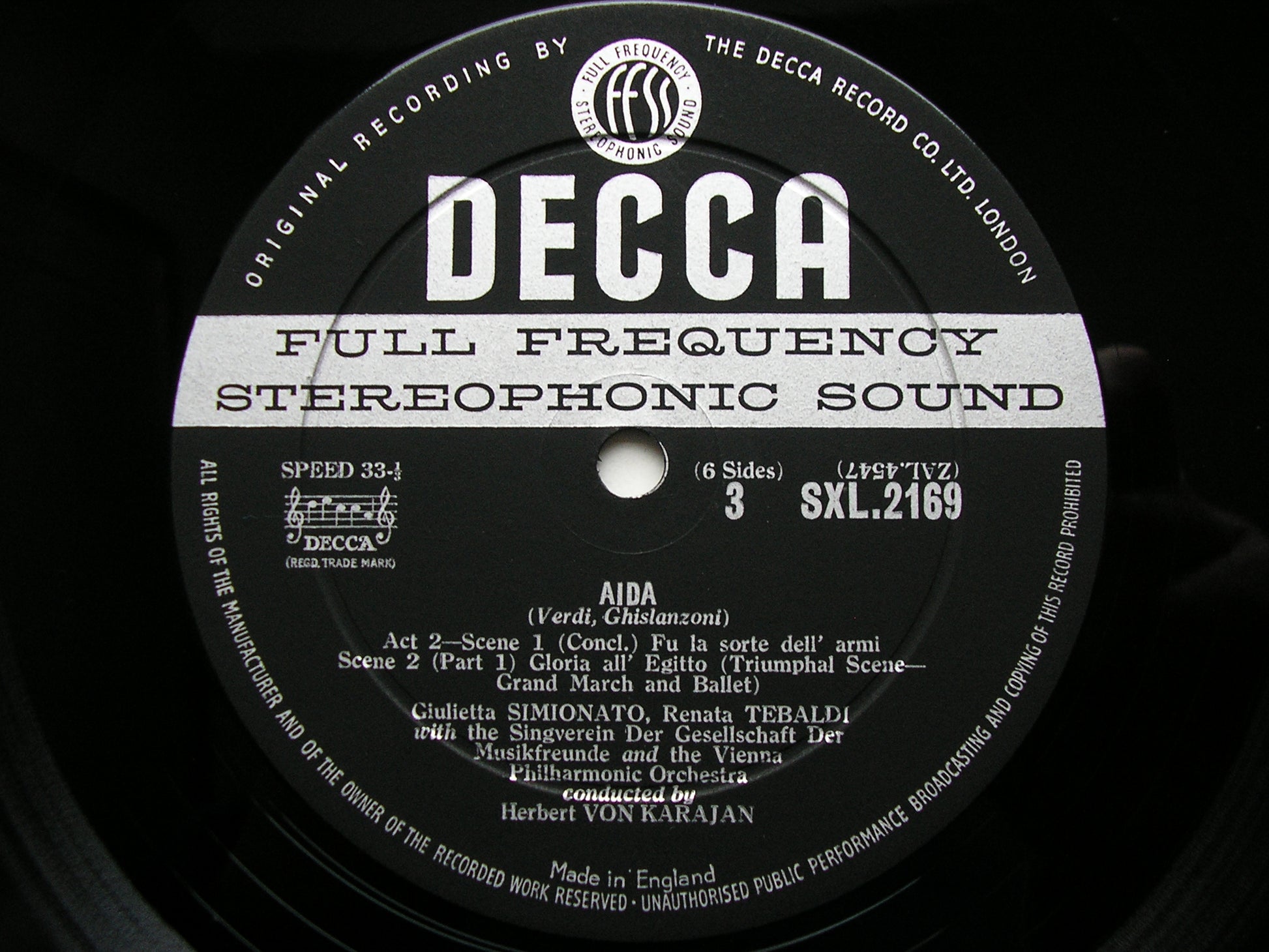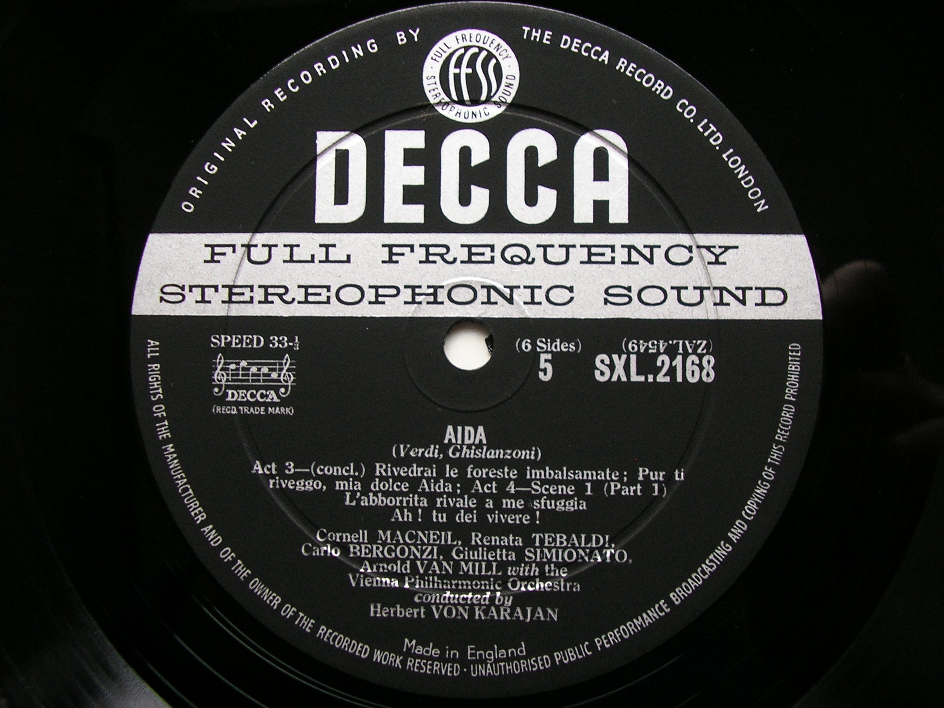 SXL 2167 - 9  VERDI: AIDA   RENATA TEBALDI / CARLO BERGONZI / CORNELL MacNEIL / GIULIETTA SIMIONATO / VIENNA PHILHARMONIC ORCHESTRA / HERBERT VON KARAJAN