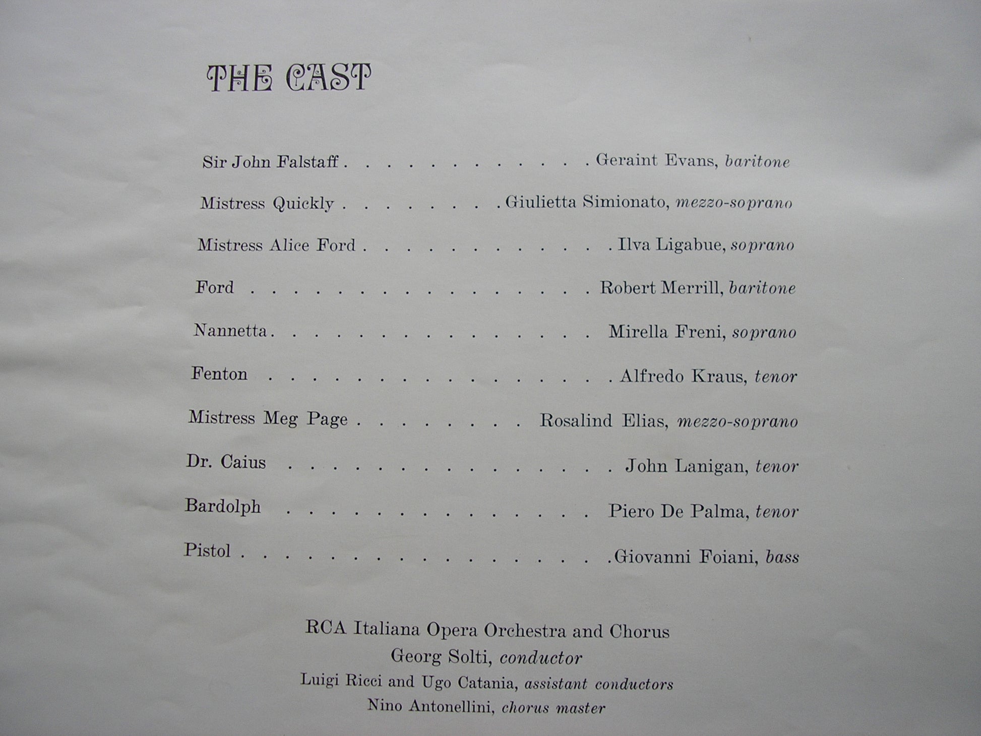 VERDI: FALSTAFF - EVANS / LIGABUE / SIMIONATO / KRAUS / FRENI / MERRILL / RCA ITALIANA ORCHESTRA / SOLTI SER 5509 - 11