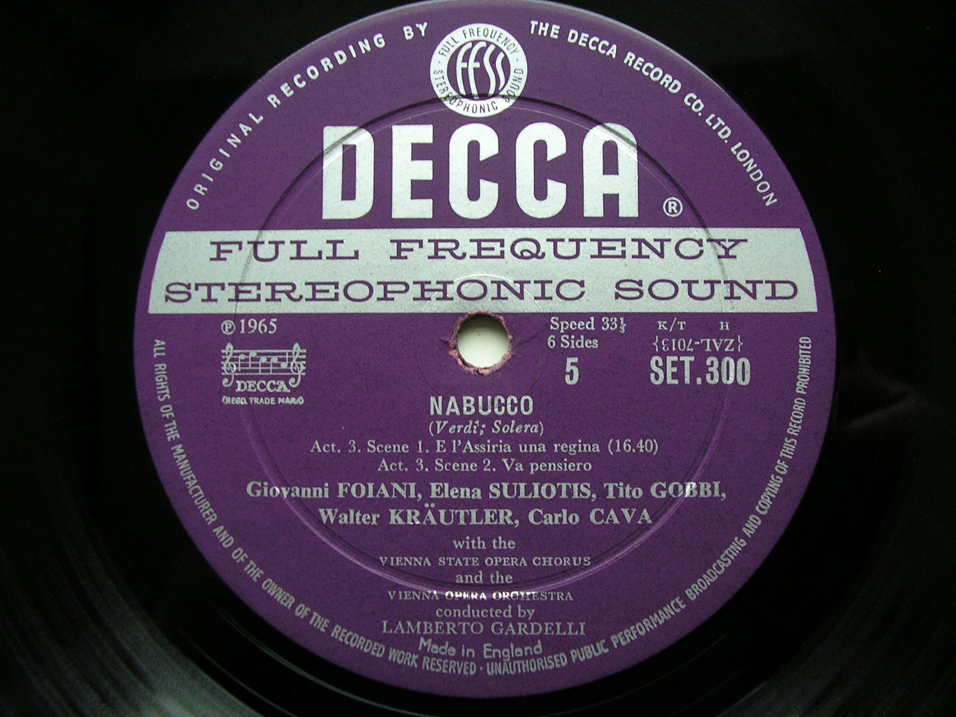 SET 298 - 300  VERDI: NABUCCO    TITO GOBBI / ELENA SULIOTIS / BRUNO PREVIDI / CARLO CAVA / VIENNA OPERA / LAMBERTO GARDELLI