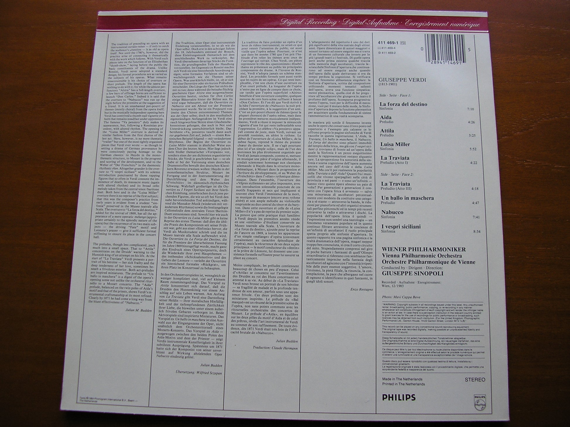 VERDI: OVERTURES Nabucco / La Forza del Destino / I Vespri Siciliani / Luisa Miller / PRELUDES to Acts 1 & 3 ofLa Traviata / Aida / Attila / Un Ballo in Maschera     GIUSEPPE SINOPOLI / VIENNA PHILHARMONIC ORCHESTRA