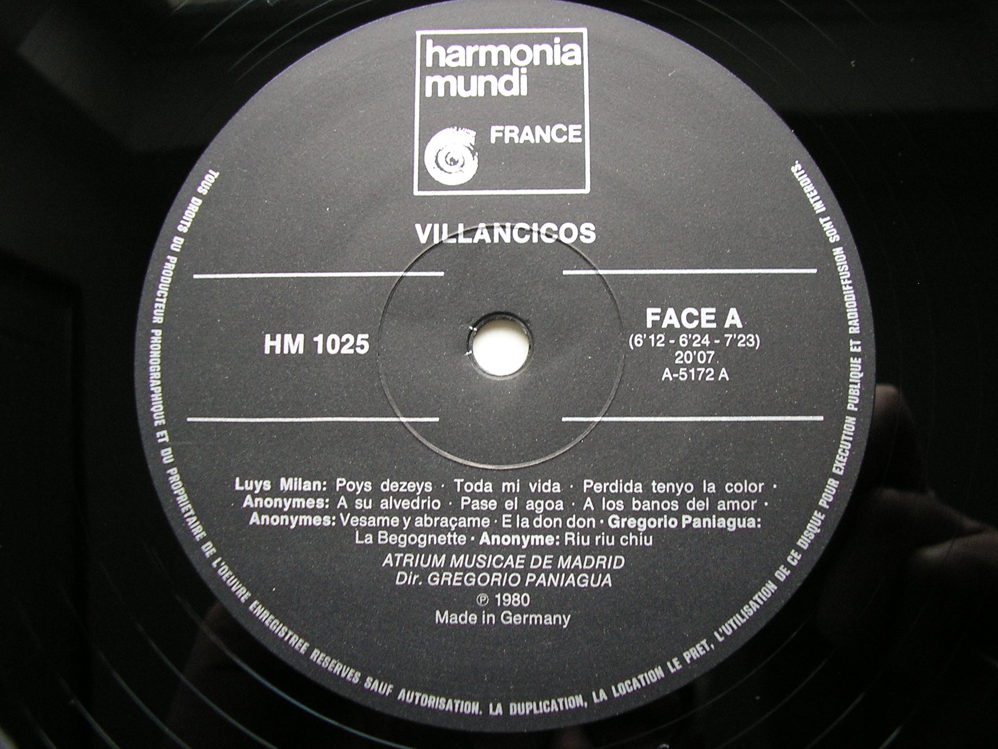 HM 1025  VILLANCICOS: SPANISH FOLKSONGS OF THE 15th & 16th CENTURIES    ATRIUM MUSICAE DE MADRID / GREGORIO PANIAGUA