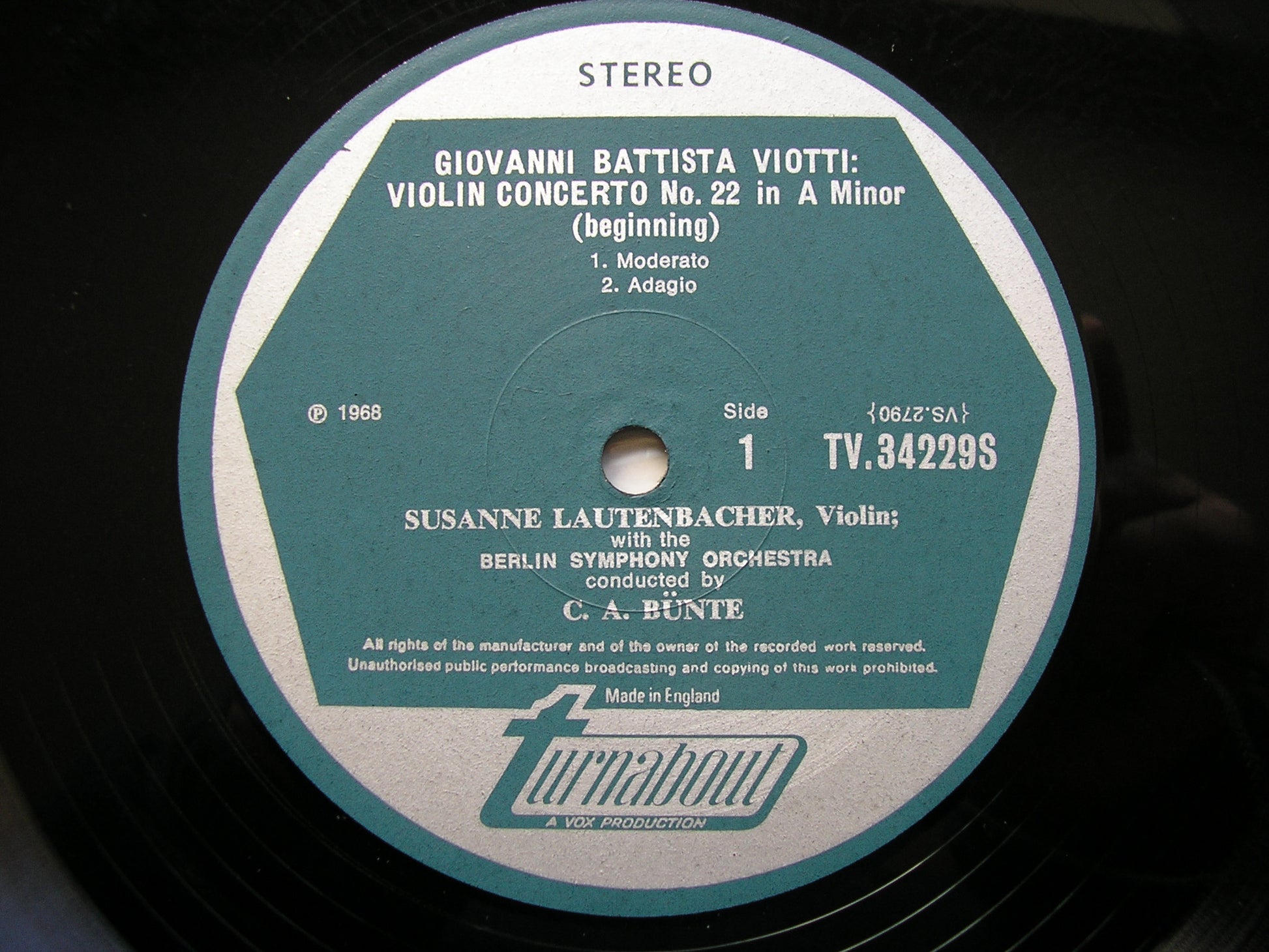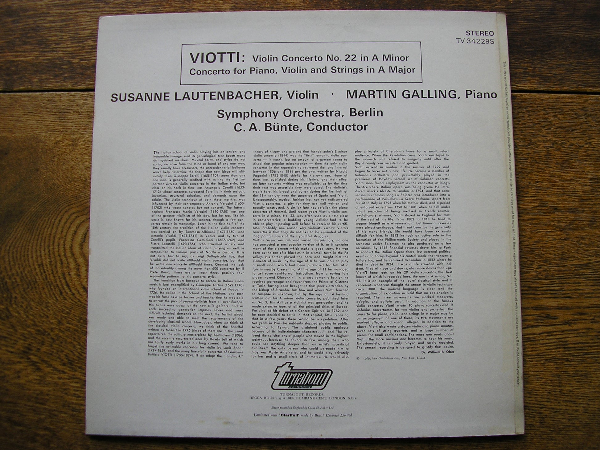 TV 34229S  VIOTTI:  VIOLIN CONCERTO No. 22 / CONCERTO FOR VIOLIN, PIANO & STRING ORCHESTRA / SYMPHONY ORCHESTRA BERLIN / C A BUNTE