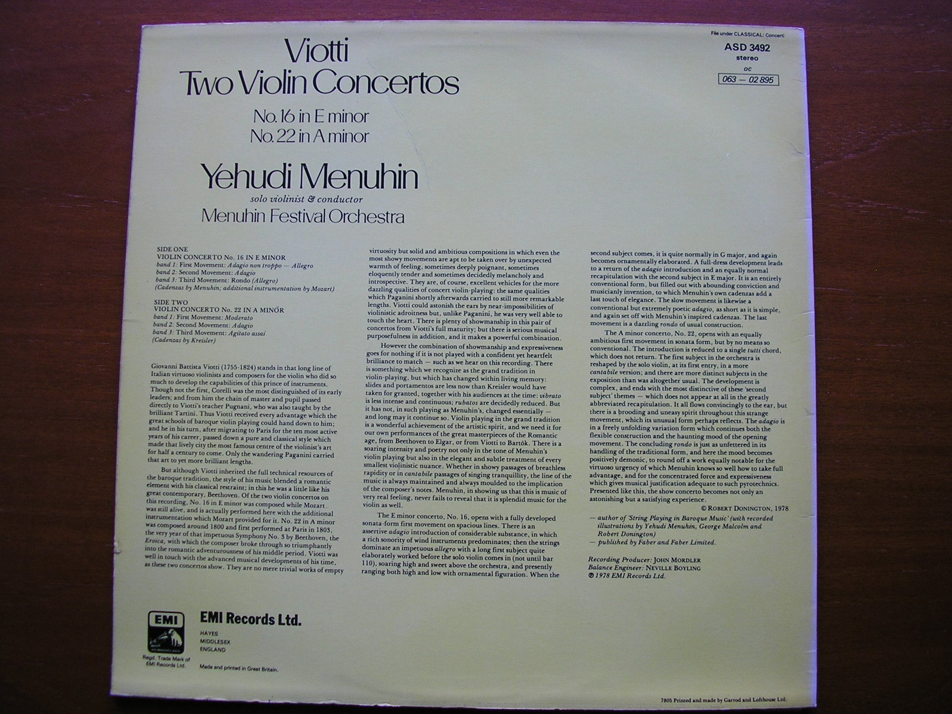 ASD 3492  VIOTTI: VIOLIN CONCERTOS Nos. 16 & 22    YEHUDI MENUHIN / MENUHIN FESTIVAL ORCHESTRA