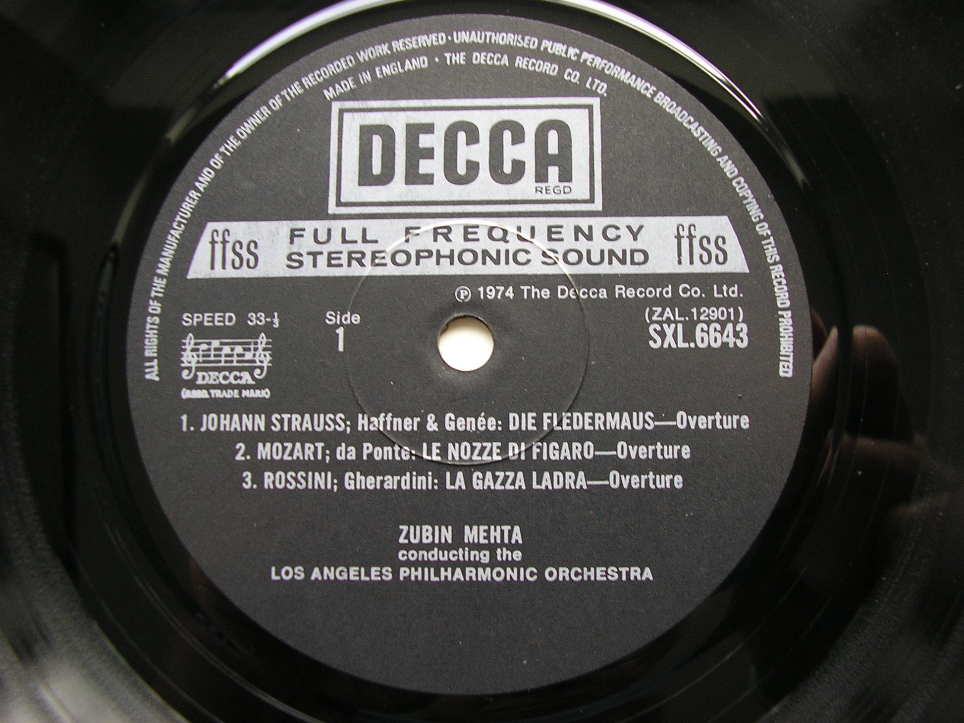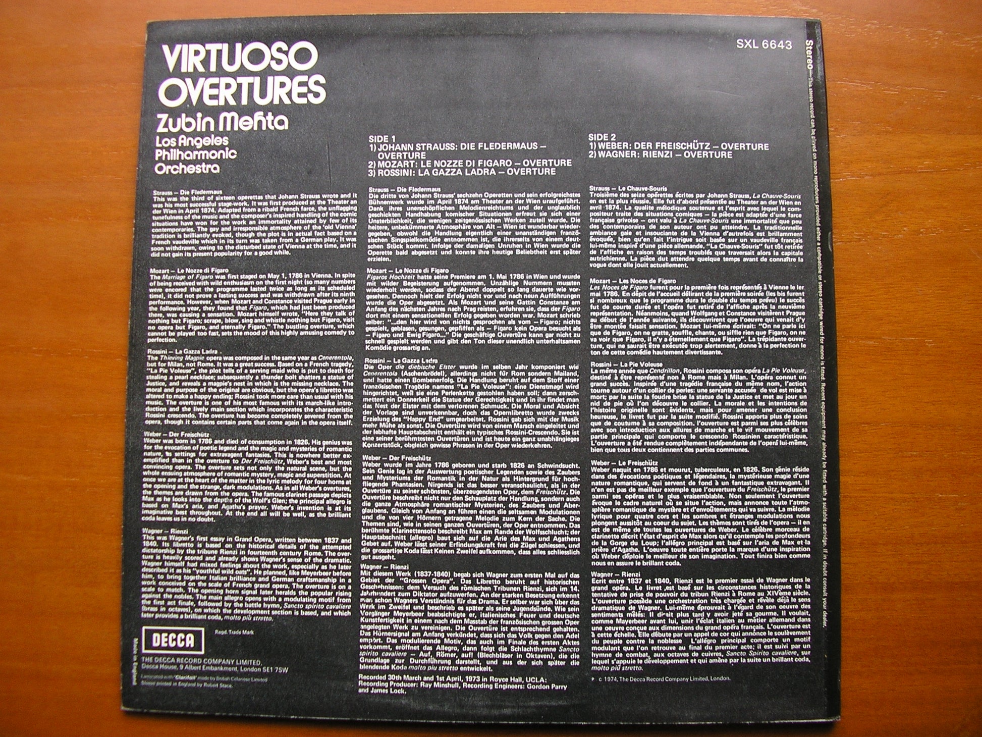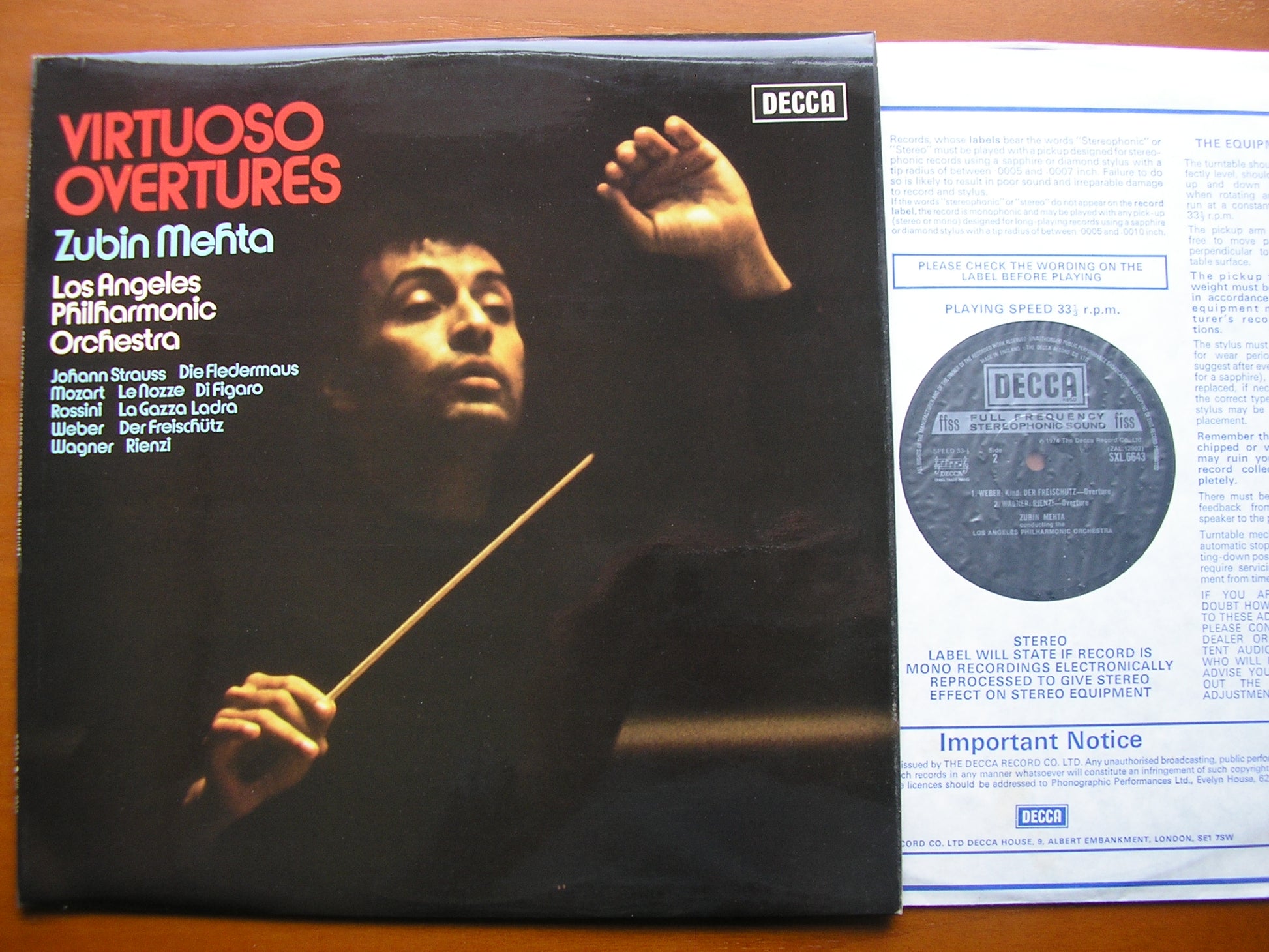 SXL 6643  VIRTUOSO OVERTURES: STRAUSS / WEBER / WAGNER / ROSSINI / MOZART     ZUBIN MEHTA / LOS ANGELES PHILHARMONIC ORCHESTRA