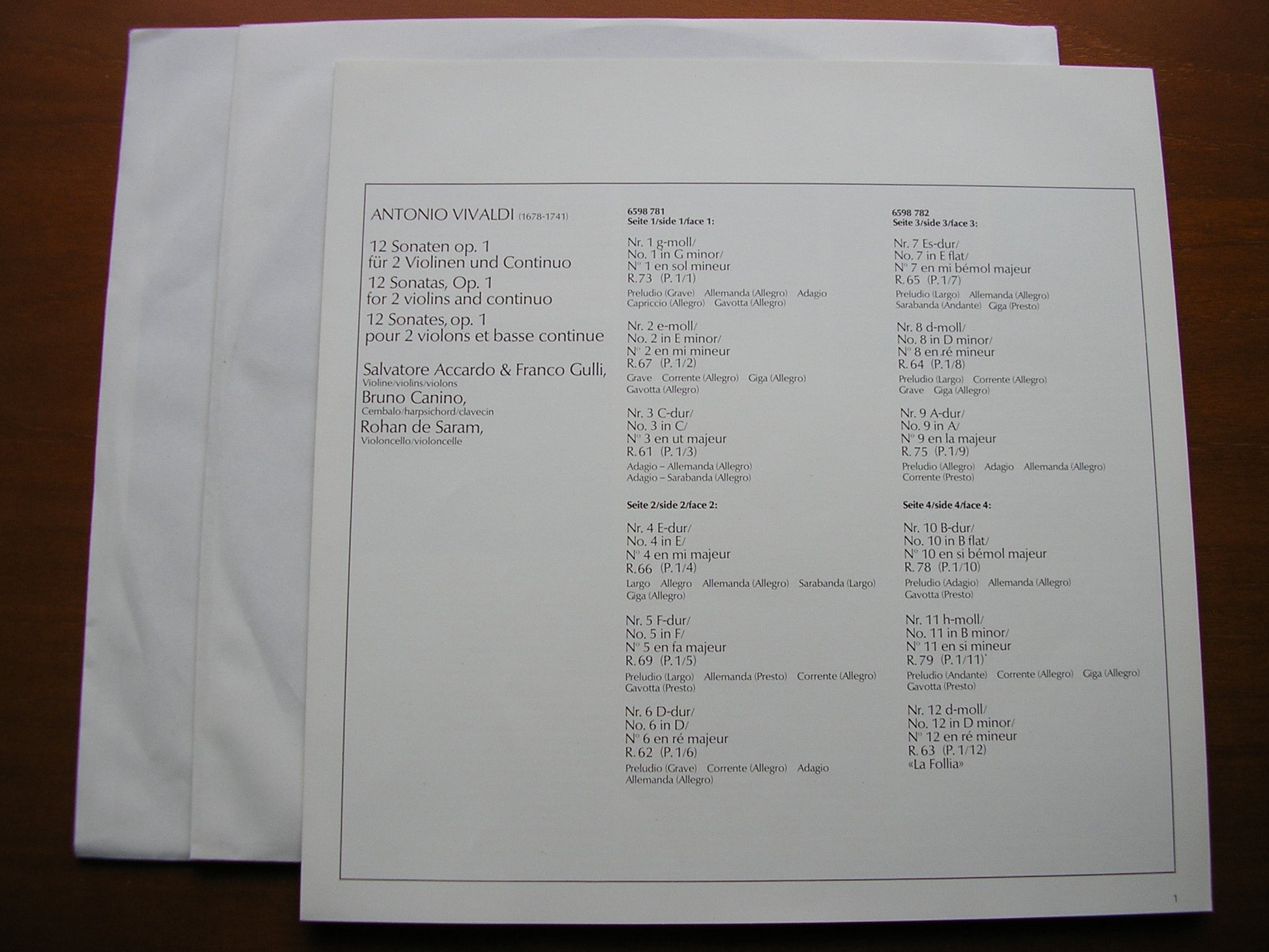 VIVALDI: 12 SONATAS FOR 2 VIOLINS & BASSO CONTINUO ACCARDO / GULLI / CANINO / SARAM 2 LP 6747 443