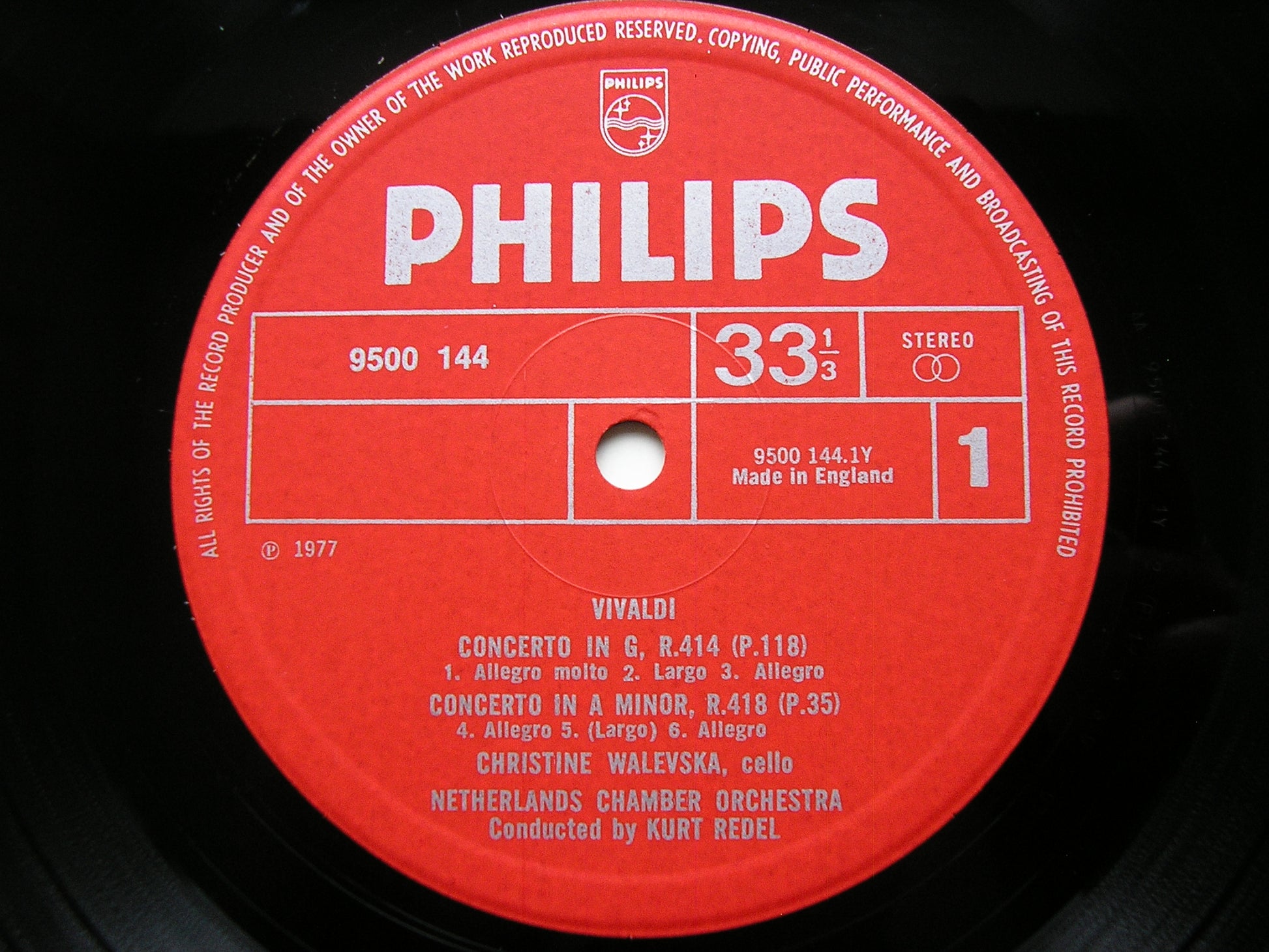 VIVALDI: CELLO CONCERTOS WALEVSKA / NETHERLANDS CHAMBER ORCHESTRA / REDEL 9500 144