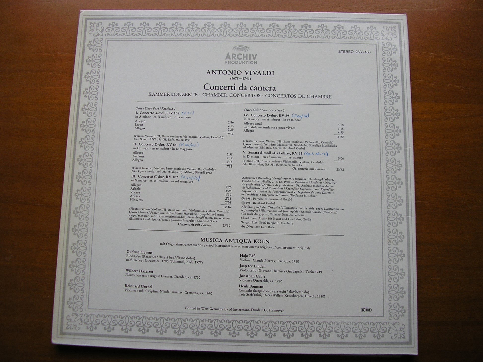 VIVALDI: CONCERTI DA CAMERA MUSICA ANTIQUA COLOGNE / GOEBEL 2533 463
