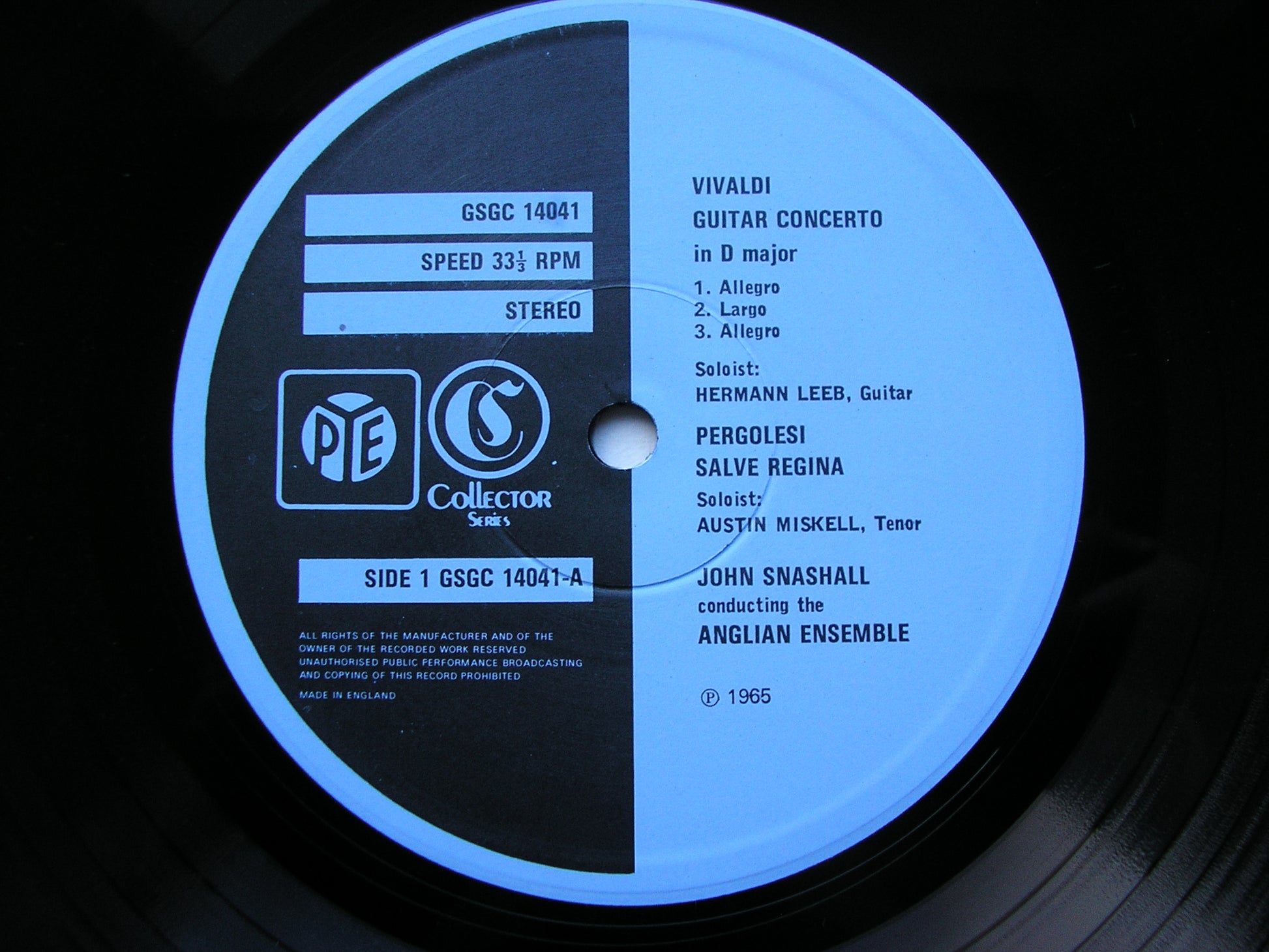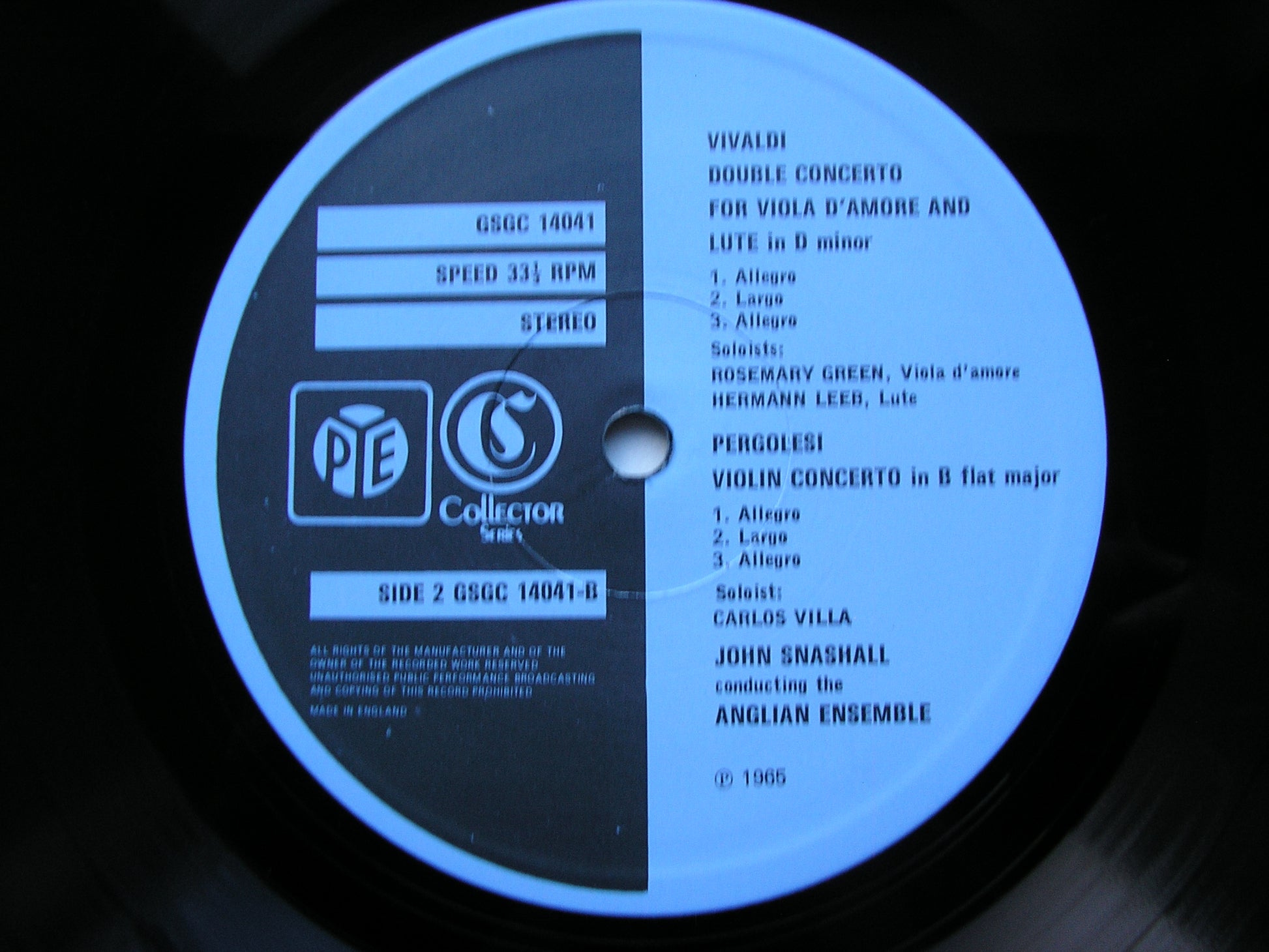 GSGC 14041  VIVALDI: GUITAR CONCERTO / DOUBLE CONCERTO FOR VIOLA D'AMORE & LUTE / PERGOLESI: SALVE REGINA / VIOLIN CONCERTO    SOLOISTS / ANGLIAN ENSEMBLE / JOHN SNASHSALL