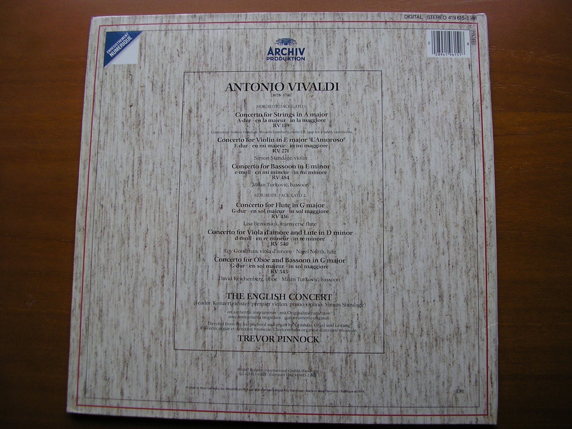419 615  VIVALDI: SIX CONCERTOS FOR DIVERSE INSTRUMENTS     SOLOISTS / THE ENGLISH CONCERT / TREVOR PINNOCK