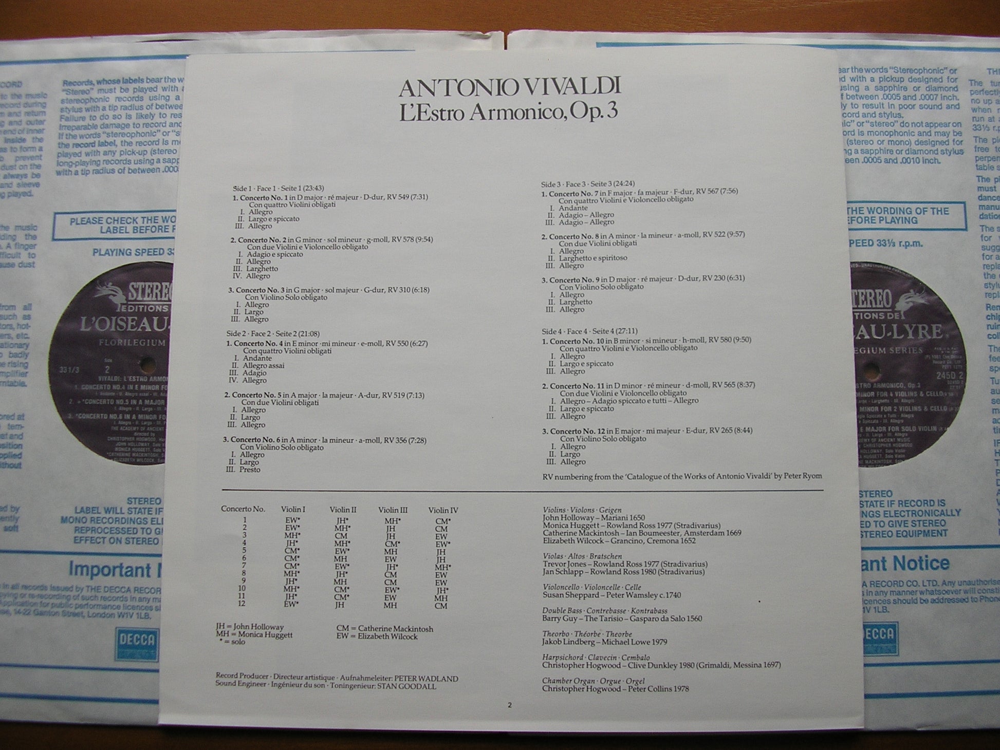 VIVALDI: L'ESTRO ARMONICO Op. 3 ACADEMY OF ANCIENT MUSIC / HOGWOOD 2LP D245D2