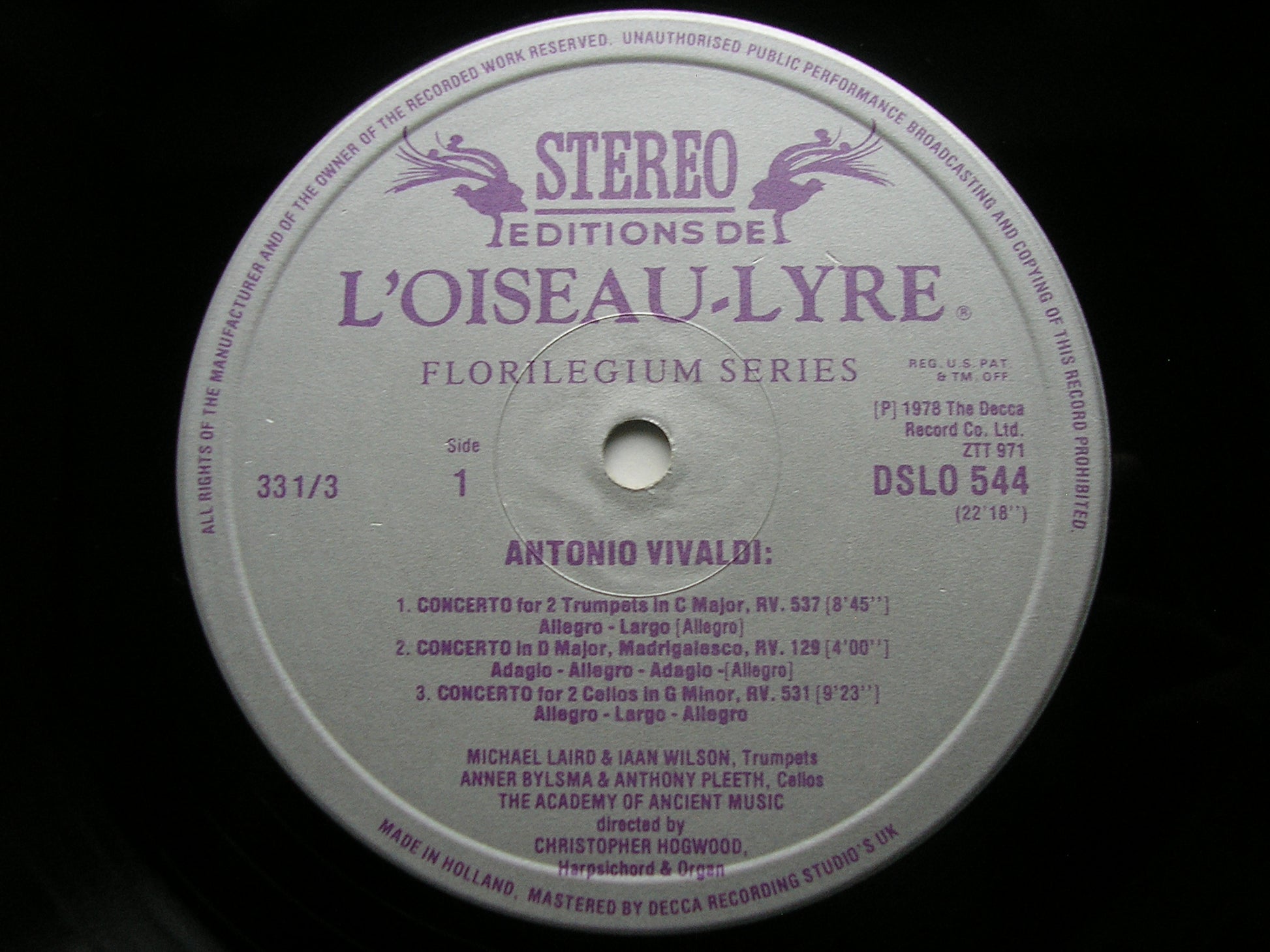 DSLO 544  VIVALDI: CONCERTOS FOR TWO TRUMPETS / TWO CELLOS / TWO FLUTES /  TWO VIOLINS & TWO CELLOS       SOLOISTS / THE ACADEMY OF ANCIENT MUSIC / CHRISTOPHER HOGWOOD
