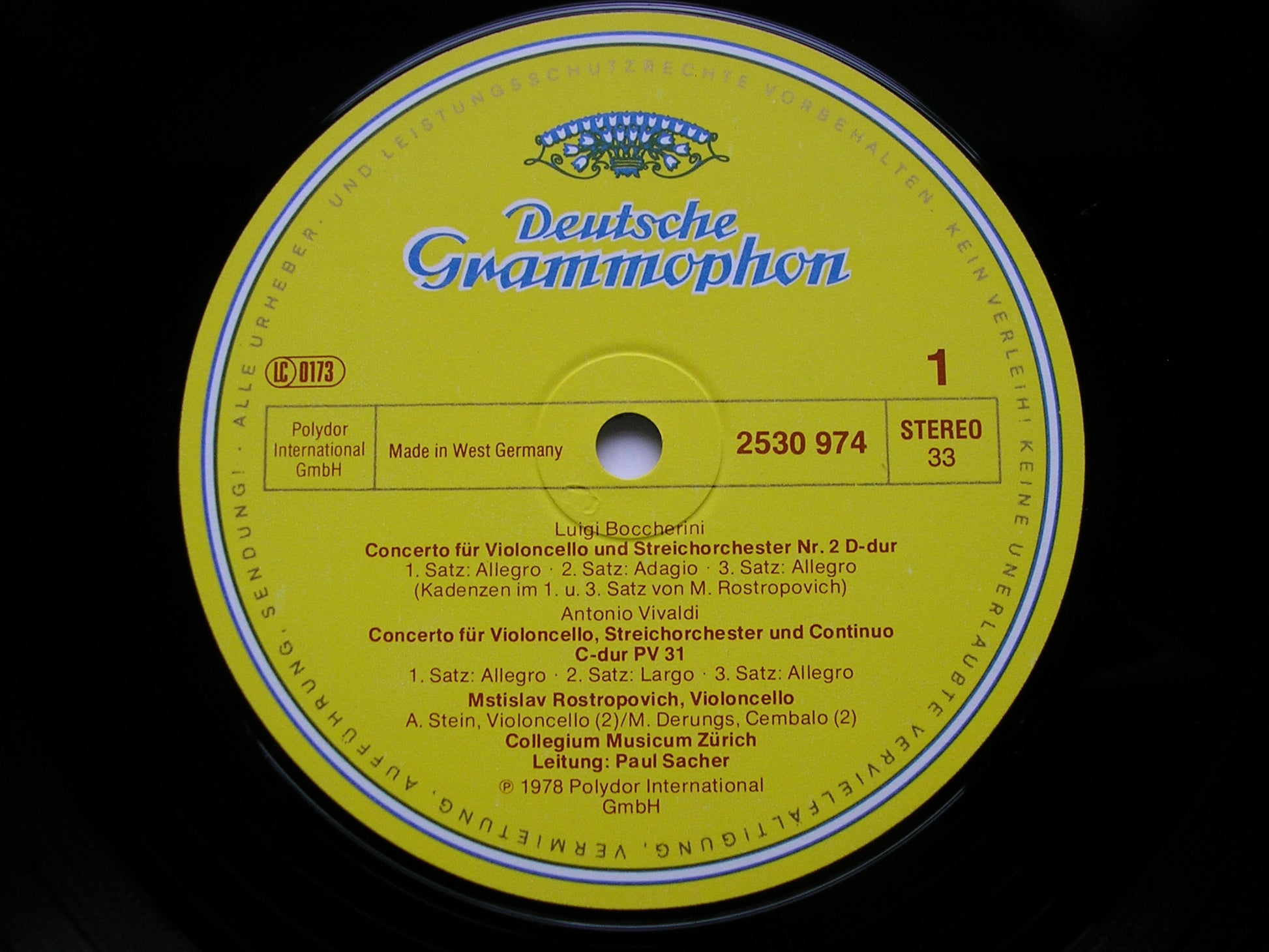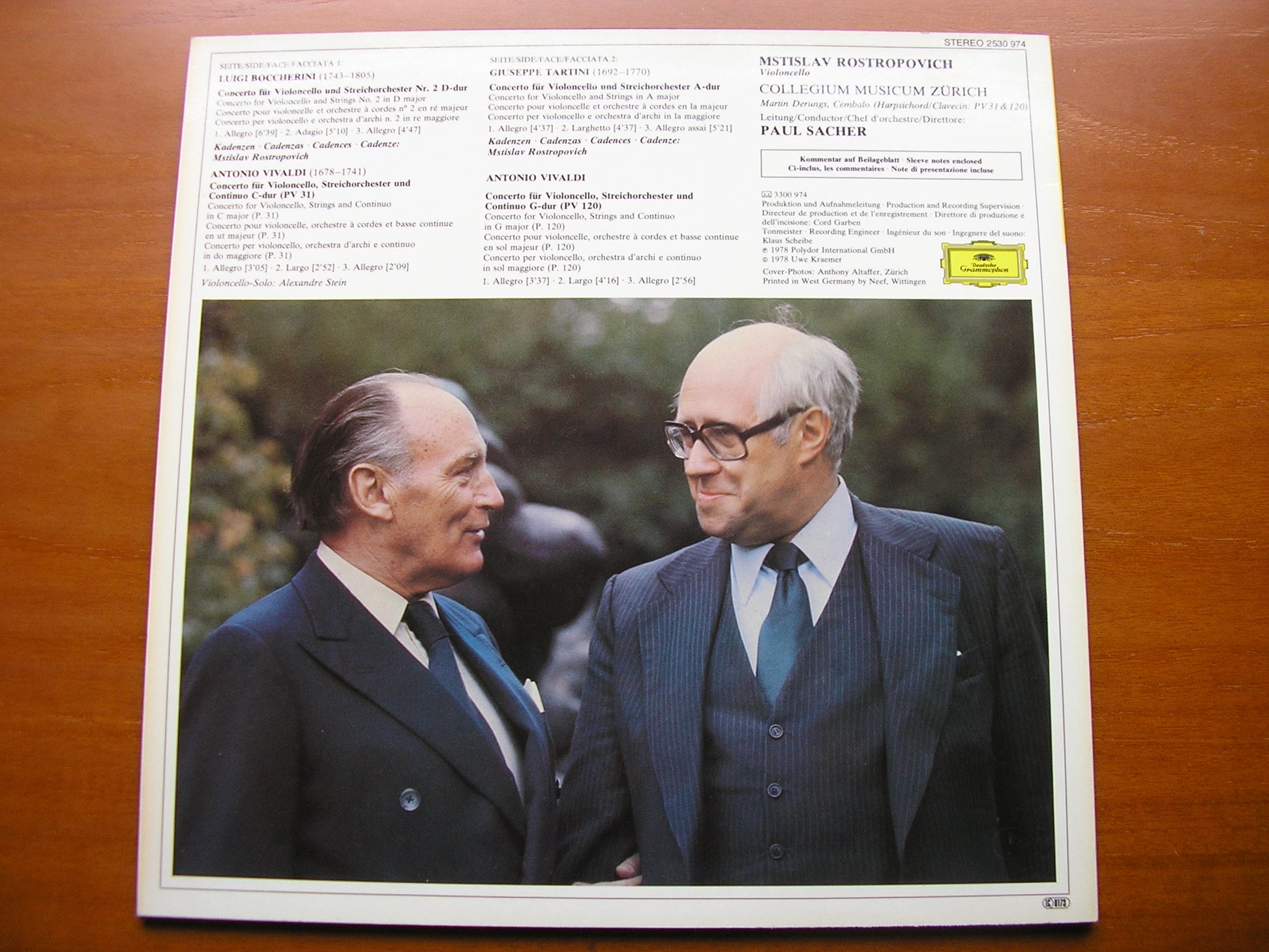 2530 974  VIVALDI / TARTINI / BOCCHERINI: CELLO CONCERTOS    MSTISLAV ROSTROPOVICH / COLLEGIUM MUSICUM ZURICH / PAUL SACHER