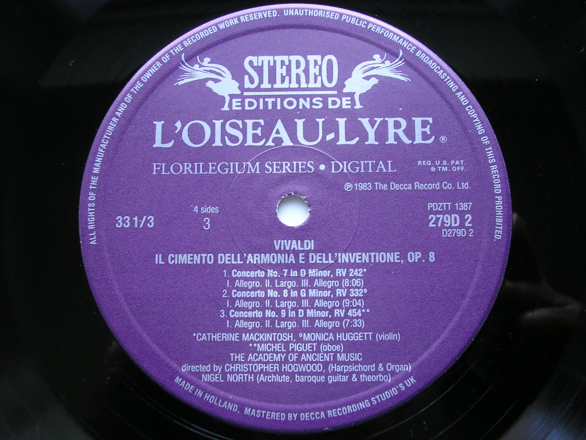 VIVALDI: THE CONTEST BETWEEN HARMONY & INVENTION Op. 8 HOGWOOD / THE ACADEMY OF ANCIENT MUSIC 2LP D279D 2