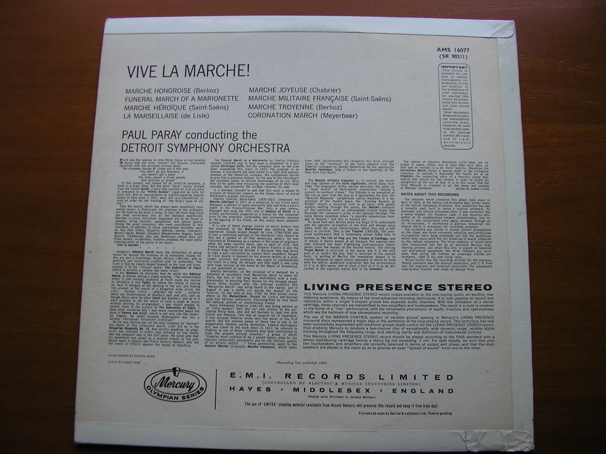 AMS 16077  VIVE LA MARCHE!     BERLIOZ / MEYERBEER / SAINT-SAENS / CHABRIER / GOUNOD       PAUL PARAY / DETROIT SYMPHONY ORCHESTRA