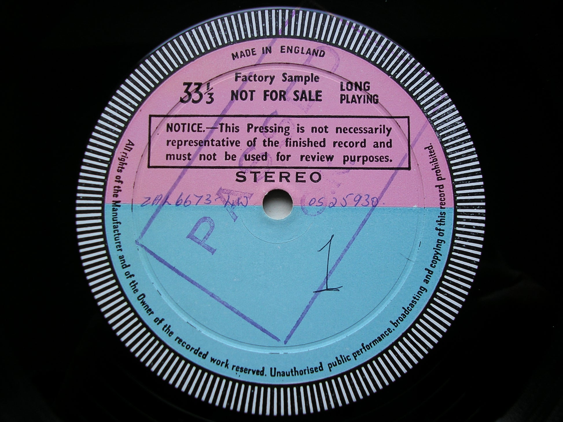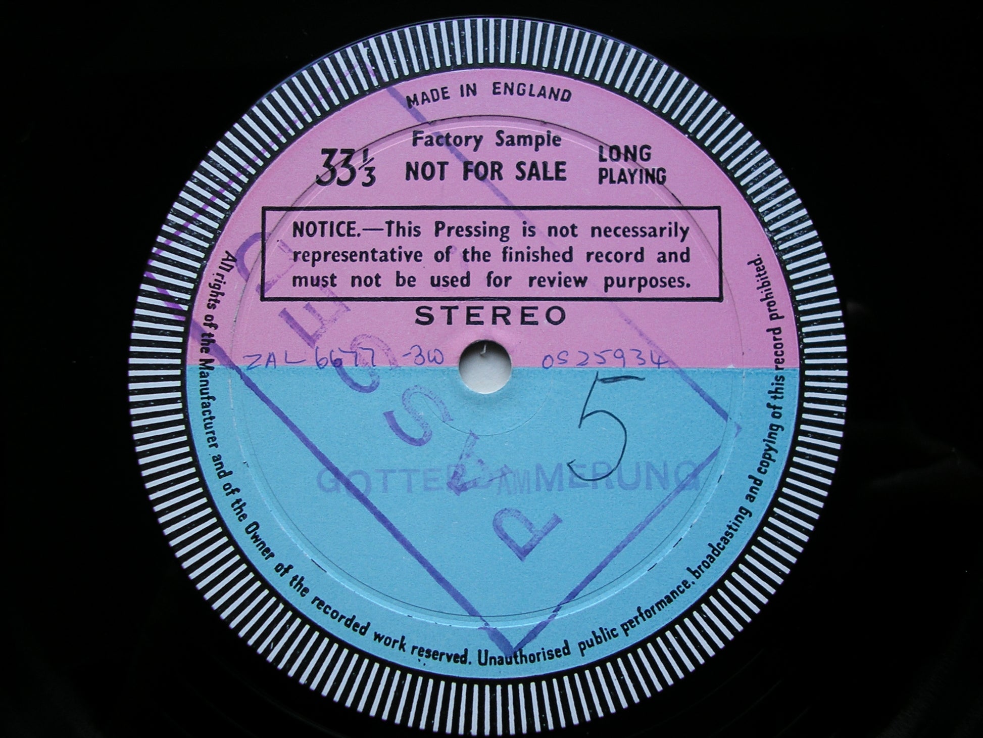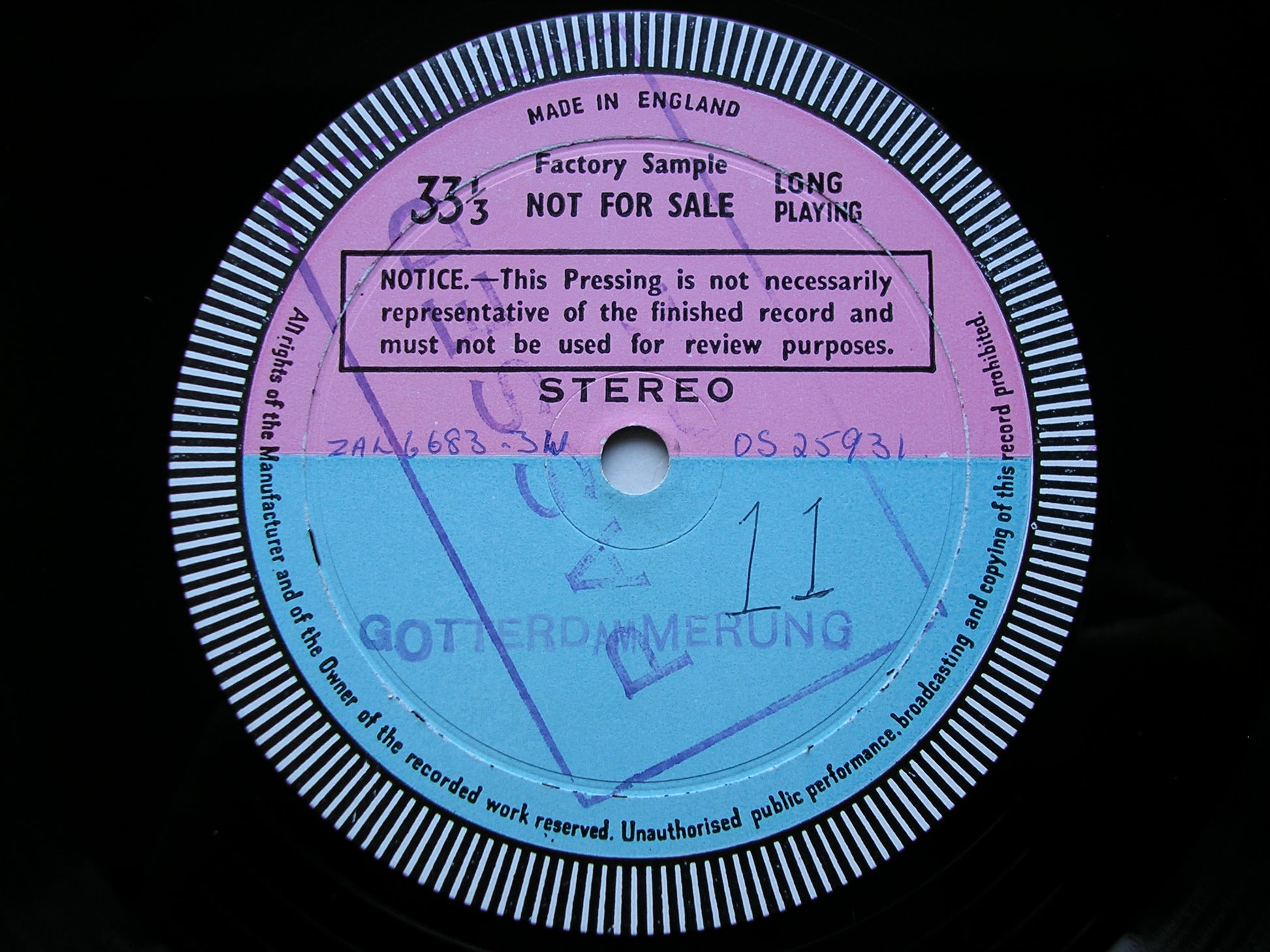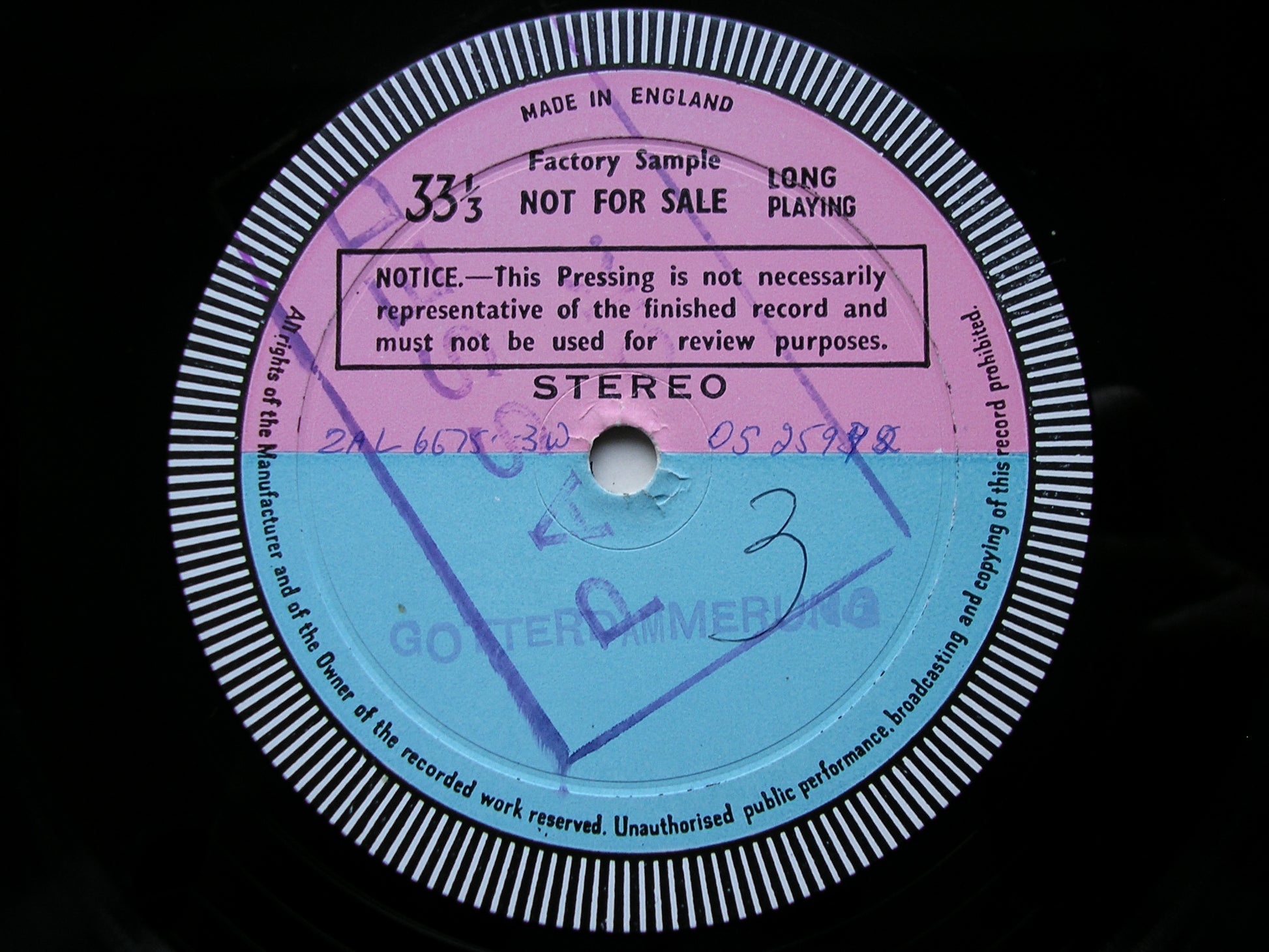 * This is a normally a 6LP set, but there are 7 test pressings here. Side 4 was rejected for technical reasons and this side  (ZAL 6676) was remastered and repressed as a single sided disc.