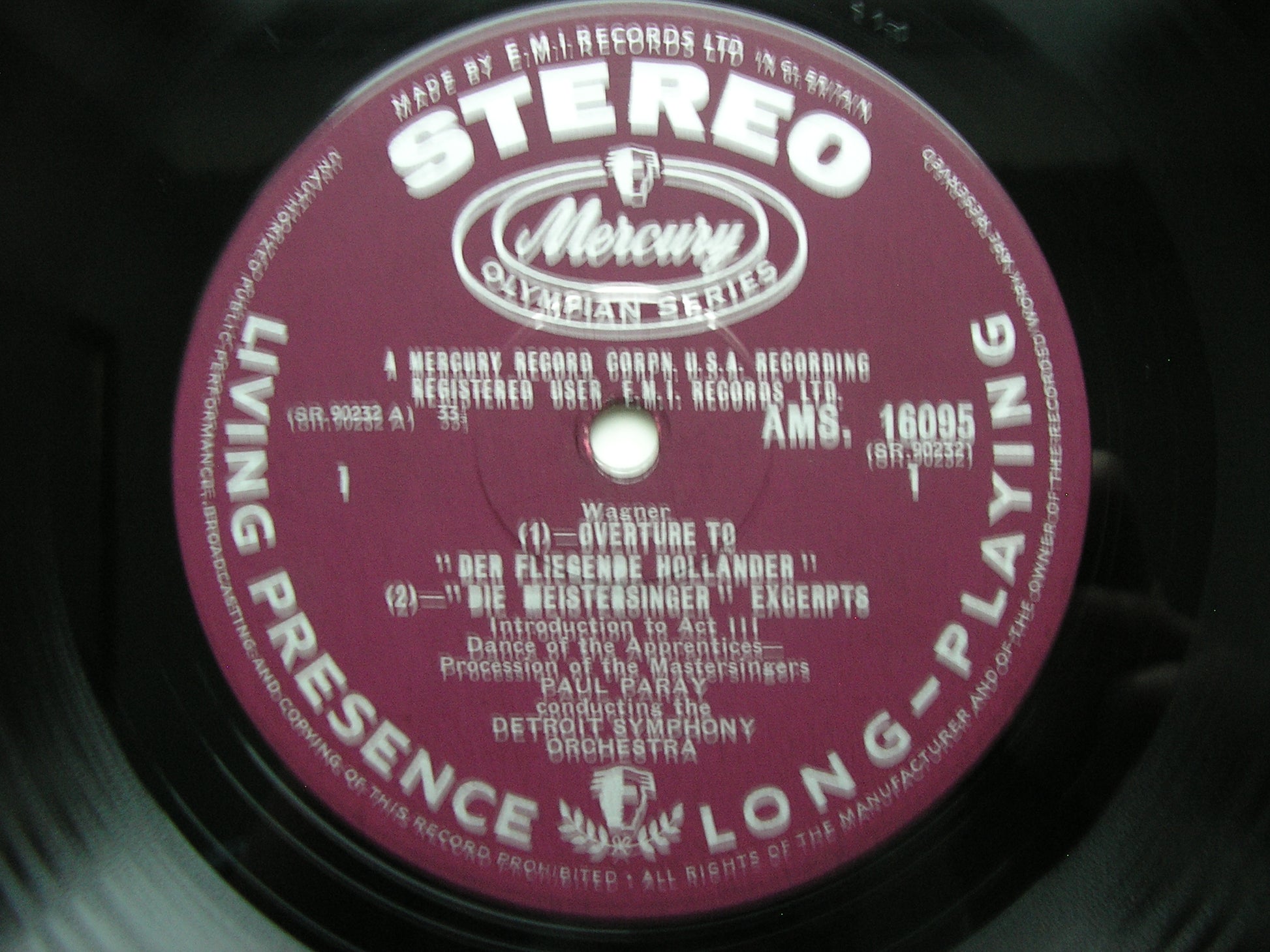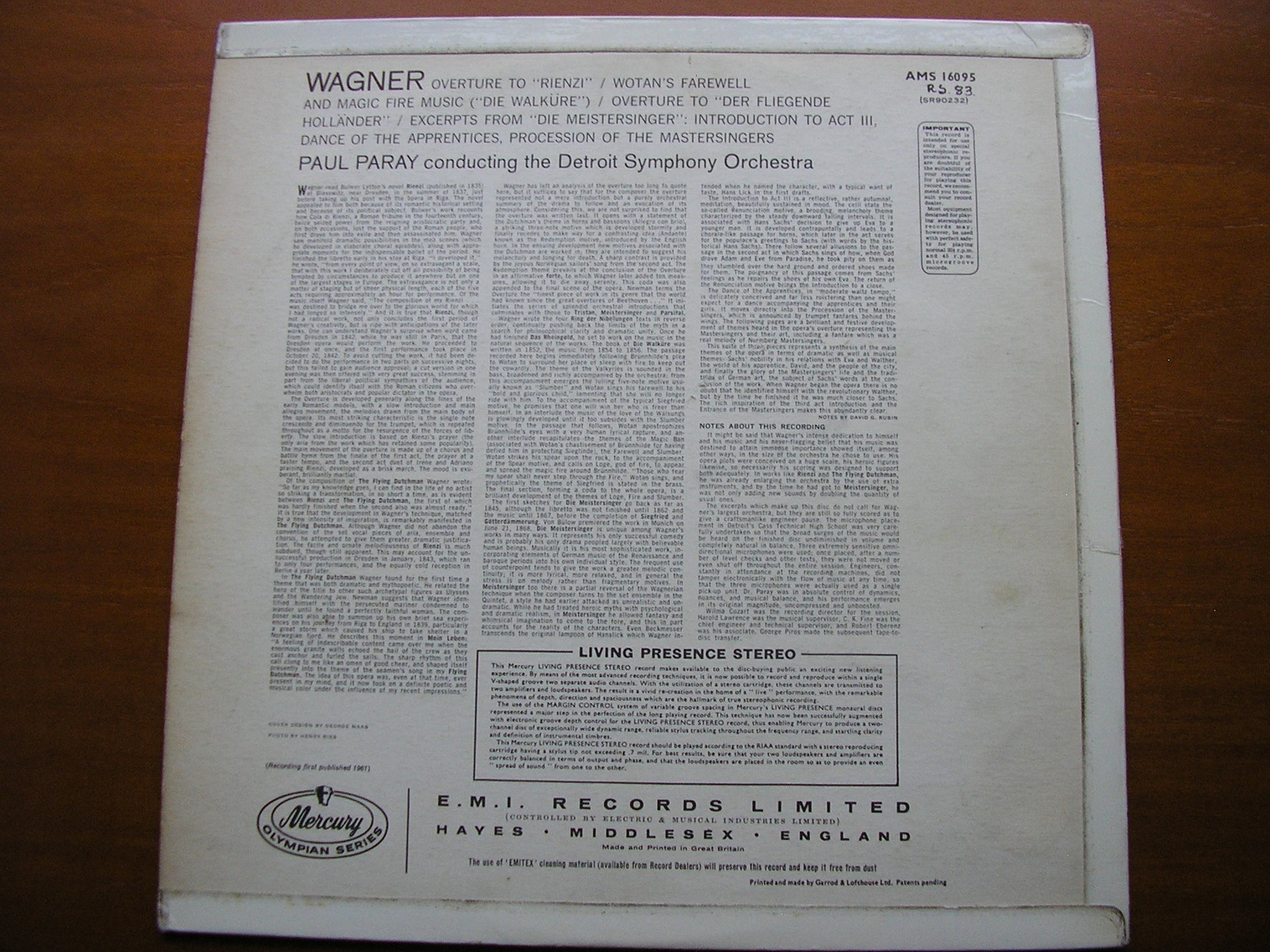 AMS 16095  WAGNER: ORCHESTRAL MUSIC from RIENZI / THE FLYING DUTCHMAN / THE MASTERSINGERS / DIE WALKURE    PAUL PARAY / DETROIT SYMPHONY ORCHESTRA