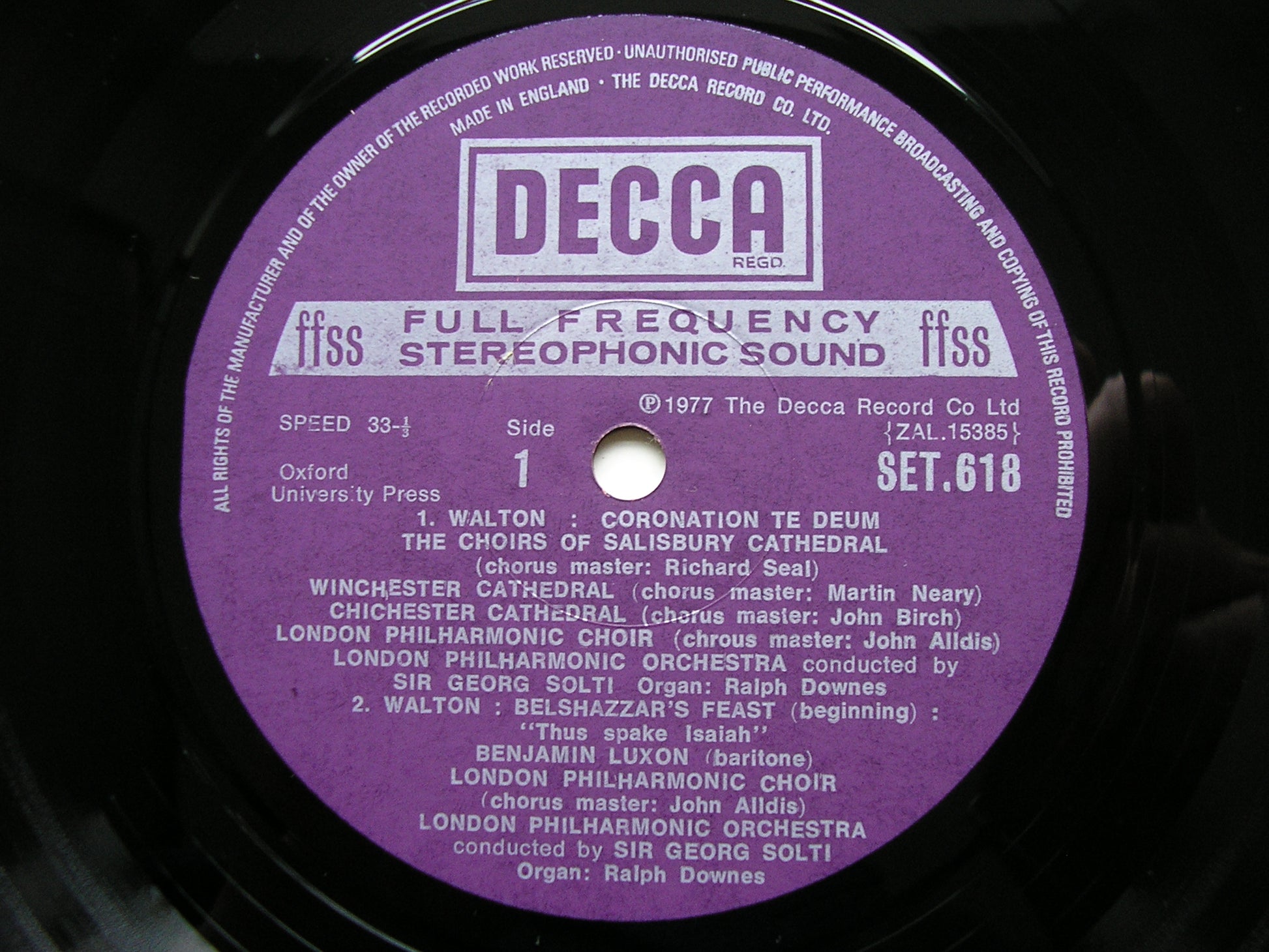 SET 618  WALTON: BELSHAZZAR'S FEAST / CORONATION TE DEUM  BENJAMIN LUXON / LONDON PHILHARMONIC ORCHESTRA / SIR GEORG SOLTI