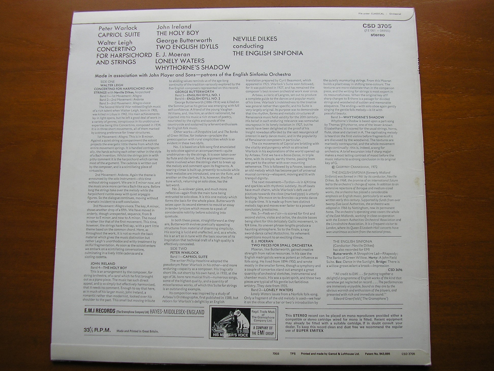 CSD 3705  WARLOCK / MOERAN / IRELAND / BUTTERWORTH / LEIGH: ORCHESTRAL WORKS        NEVILLE DILKES / THE ENGLISH SINFONIA
