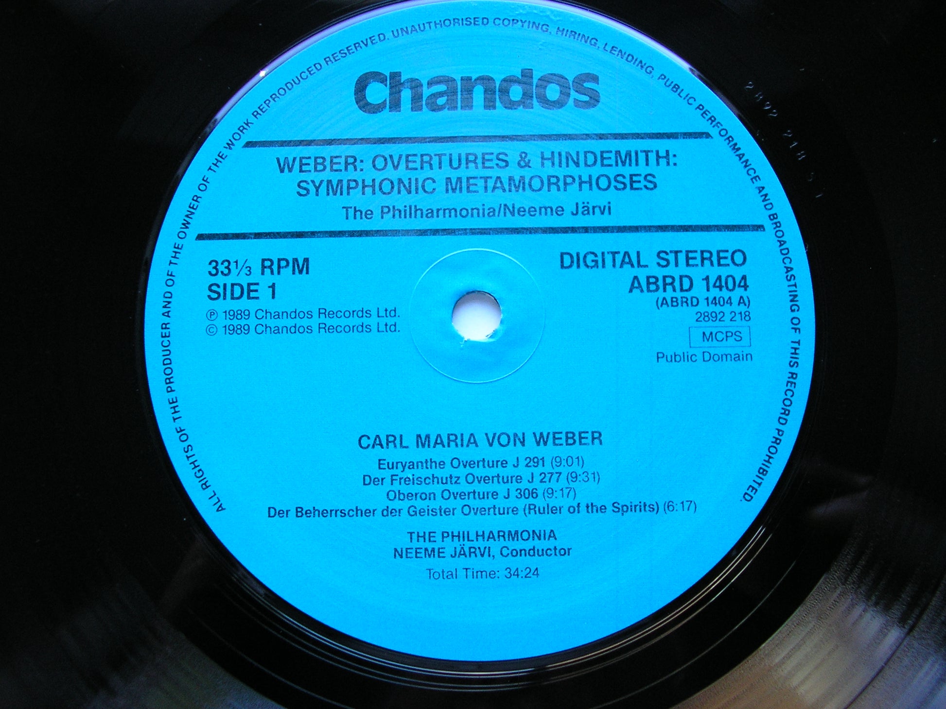 WEBER: OVERTURES / HINDEMITH: SYMPHONIC METAMORPHOSES JARVI / PHILHARMONIA ABRD 1404