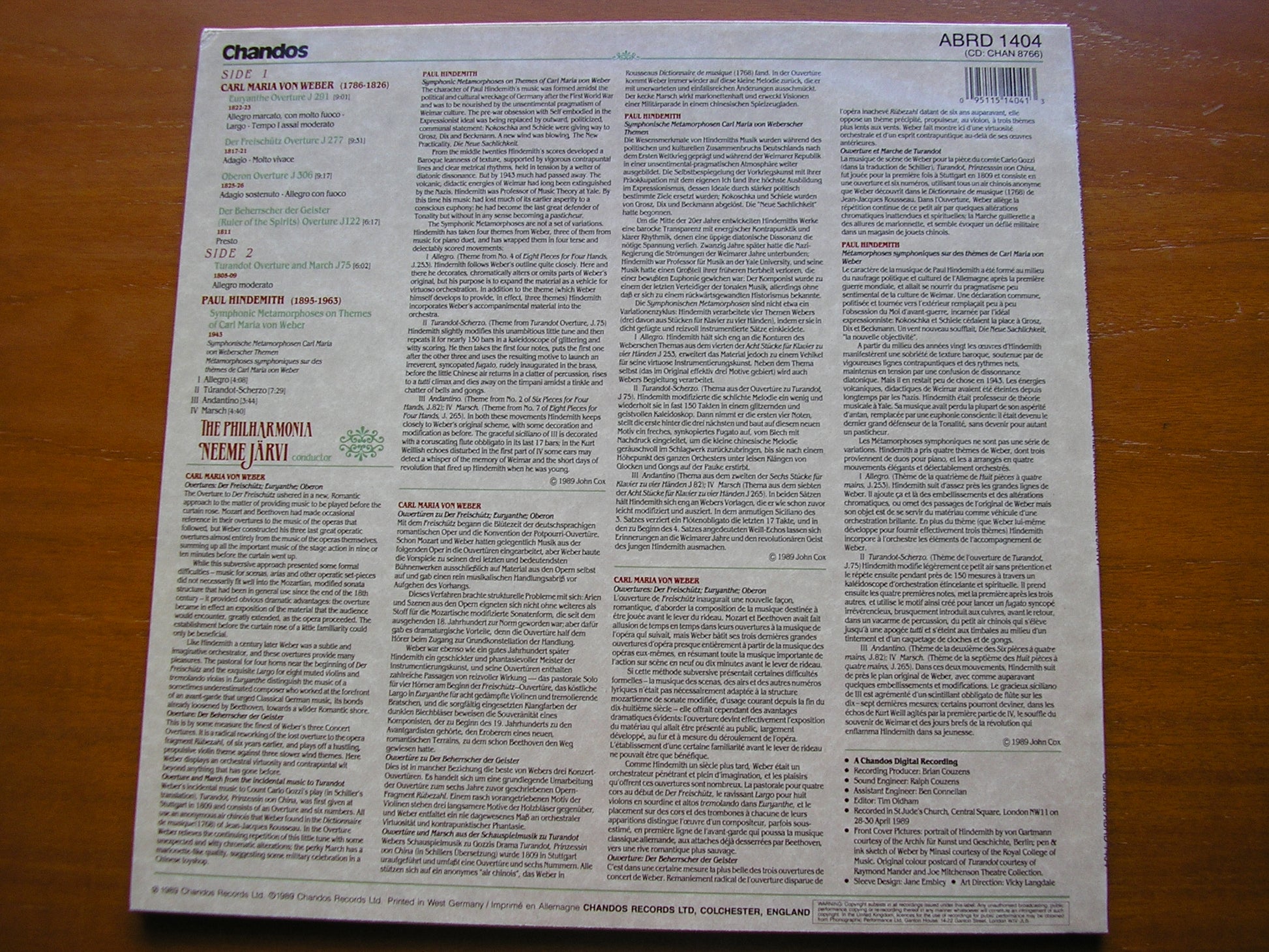 ABRD 1404  WEBER: FIVE OVERTURES & MARCH / HINDEMITH: SYMPHONIC METAMORPHOSES ON THEMES OF WEBER    NEEME JARVI / PHILHARMONIA ORCHESTRA