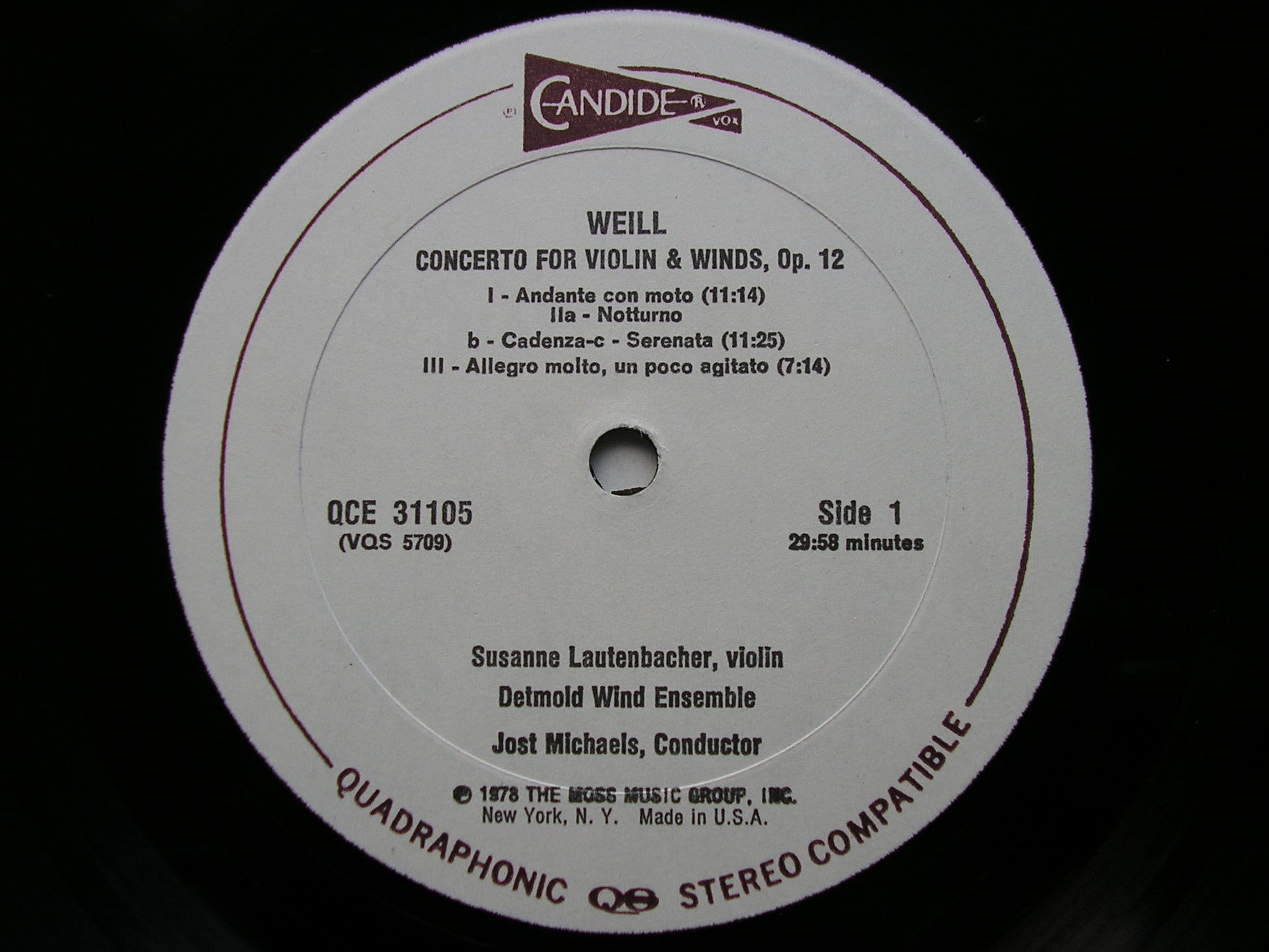 WEILL: CONCERTO FOR VIOLIN & WINDS / HARTMANN: CONCERTO FUNEBRE FOR VIOLIN & STRINGS LAUTENBACHER / DETMOLD WIND / WURTTEMBERG CHAMBER ORCHESTRA / FAERBER QCE 31105