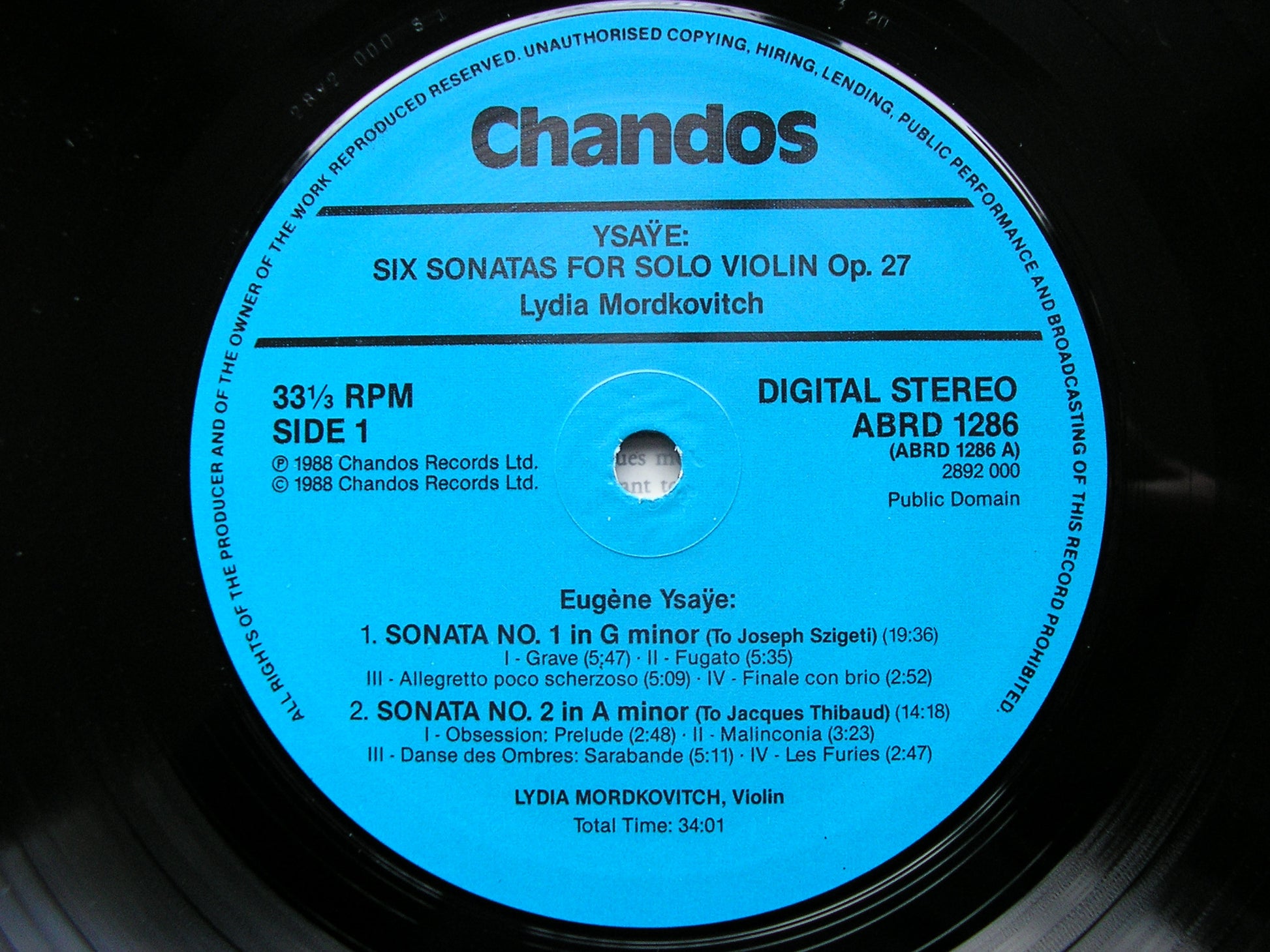 YSAYE: SIX SONATAS FOR SOLO VIOLIN LYDIA MORDKOVITCH ABRD1286