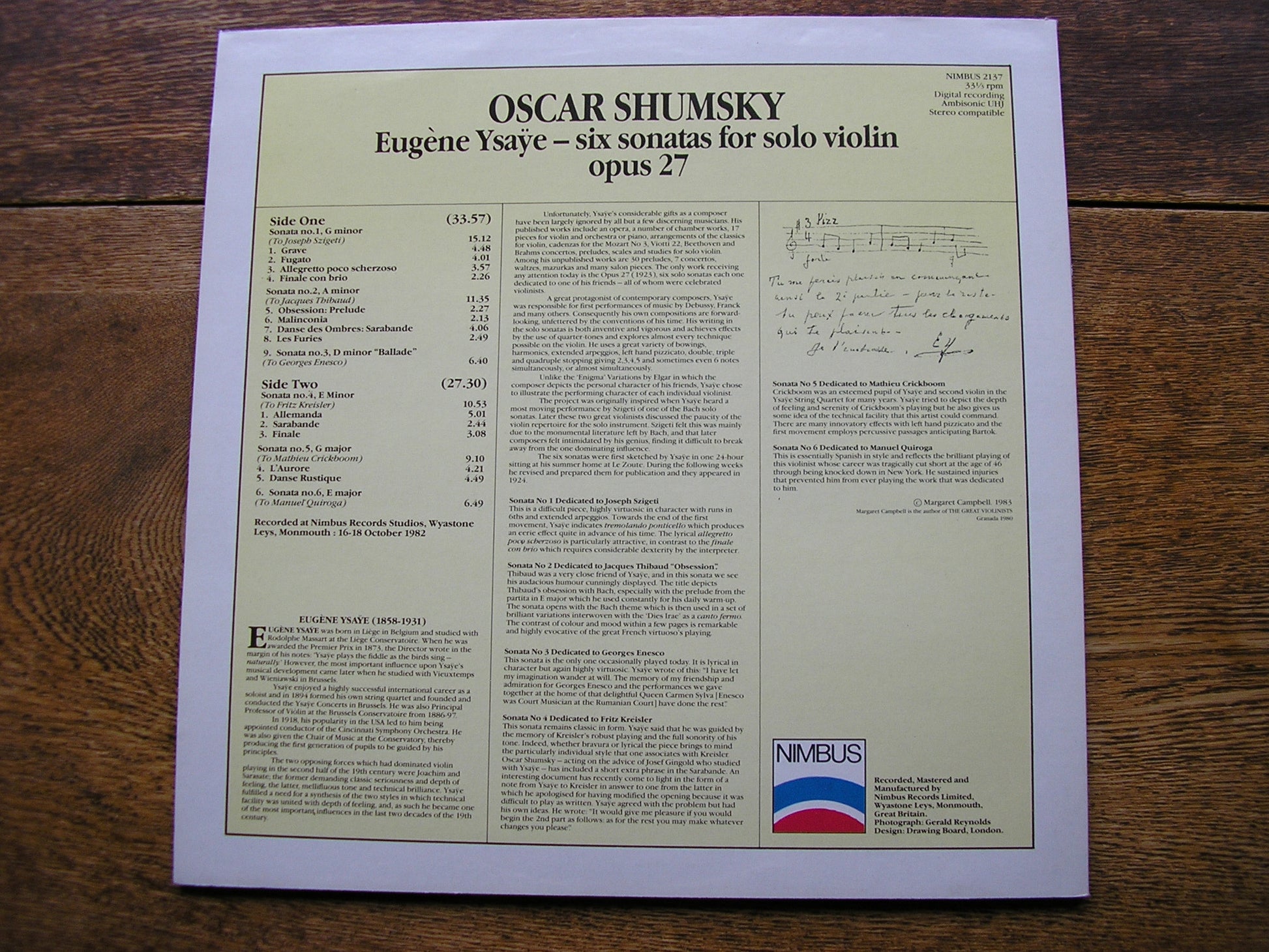 NIMBUS 2137  EUGENE YSAYE: SIX SONATAS FOR SOLO VIOLIN Op. 27    OSCAR SHUMSKY